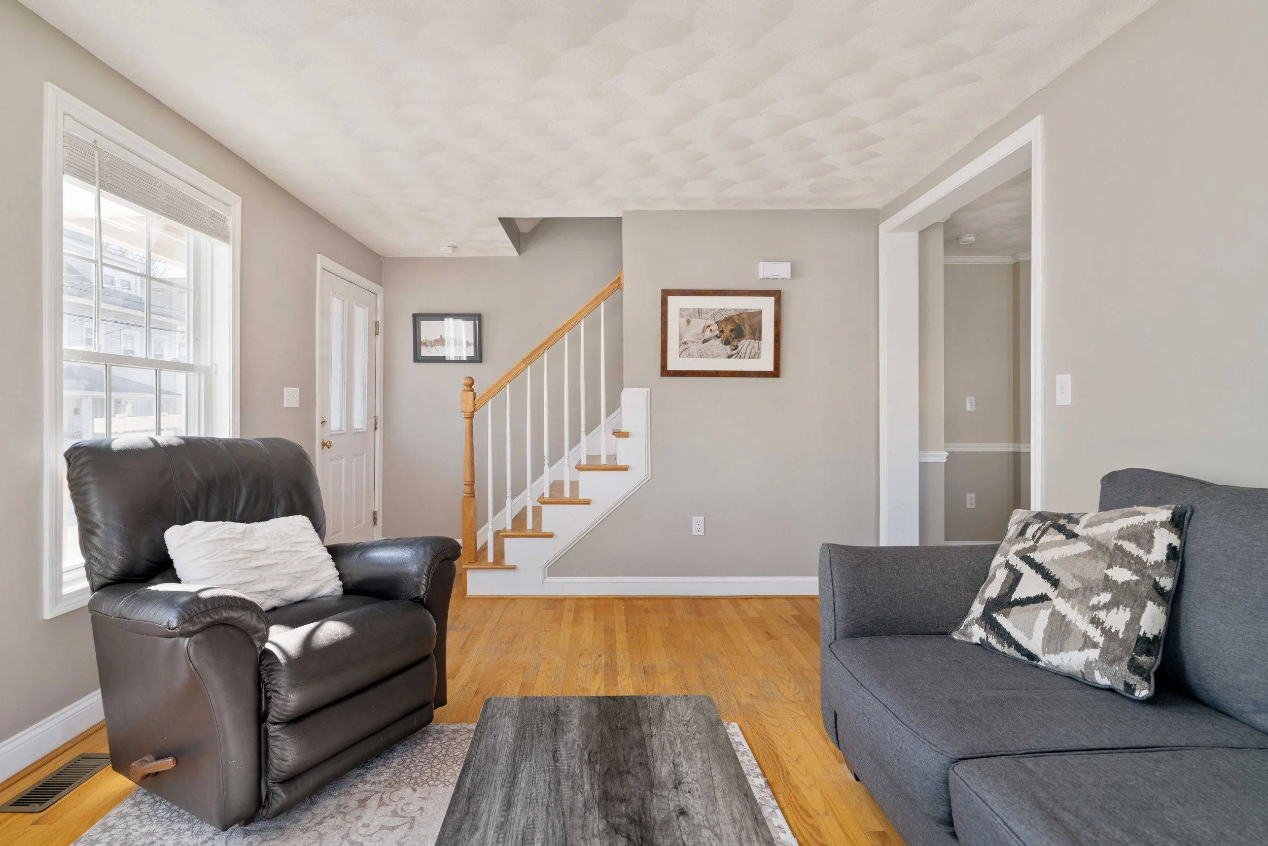 Delightful North Billerica townhouse with a spacious layout, private porch, and expansive patio with shared yard. This charming 3-bed, 1.5-bath unit boasts high ceilings, contemporary lighting throughout, and offers plenty of room to spread out and make yourself at home. The open layout of the living and dining rooms creates a welcoming atmosphere, perfect for both relaxing and entertaining. The kitchen, with direct access to the private porch and shared patio, includes modern appliances and abundant counter space. Three ample bedrooms, in-unit laundry, brand new central air, and private basement storage completes this offering. Close to the Concord River, Warren H Manning State Forest, Market Basket, Stop & Shop, Rt 3, Rt 495, and all that Billerica has to offer.