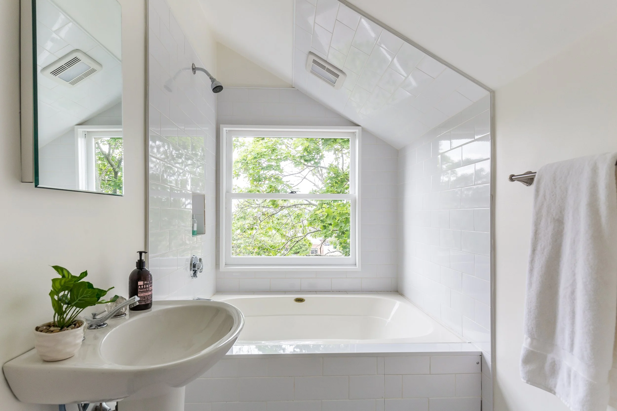 Mirroring the 2nd floor layout, a sun soaked second bedroom with double closets and oversized windows lies on the 3rd floor, serviced by a full bath with jetted tub and skylight.