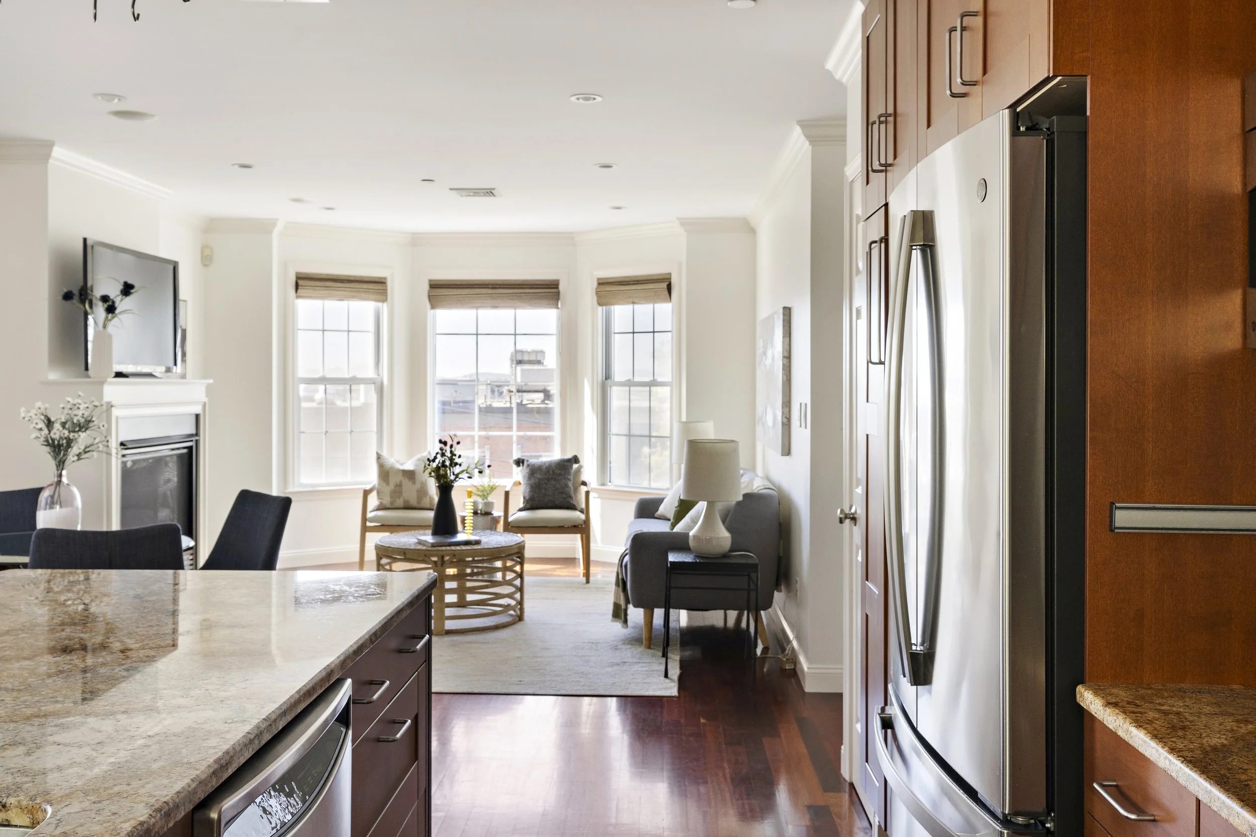 Penthouse level condo in Mission Hill with 2-beds, 2-baths, 1-car garage parking, and views out to the Blue Hills! Built in 2008, this inviting home features gleaming hardwood floors, crown molding, a spacious chef’s kitchen, and custom window treatments throughout. Home cooks will delight in the beautifully finished kitchen with stainless appliances, oversized island with walnut extension, mosaic backsplash, and wine fridge. Walk out to the rear deck plumbed with a gas line for easy grilling. And enjoy the everyday luxury of 2 gas fireplaces, integrated speakers, and even a steam shower in the ensuite primary bathroom. In-unit laundry, private storage, and an owned solar panel system complete this package, while exclusive roof rights offer opportunities for future improvements. Conveniently located close to the Longwood Medical Center, Brookline Village, and Jamaica Plain neighborhoods, with easy access to multiple MBTA stops on the green and orange lines.