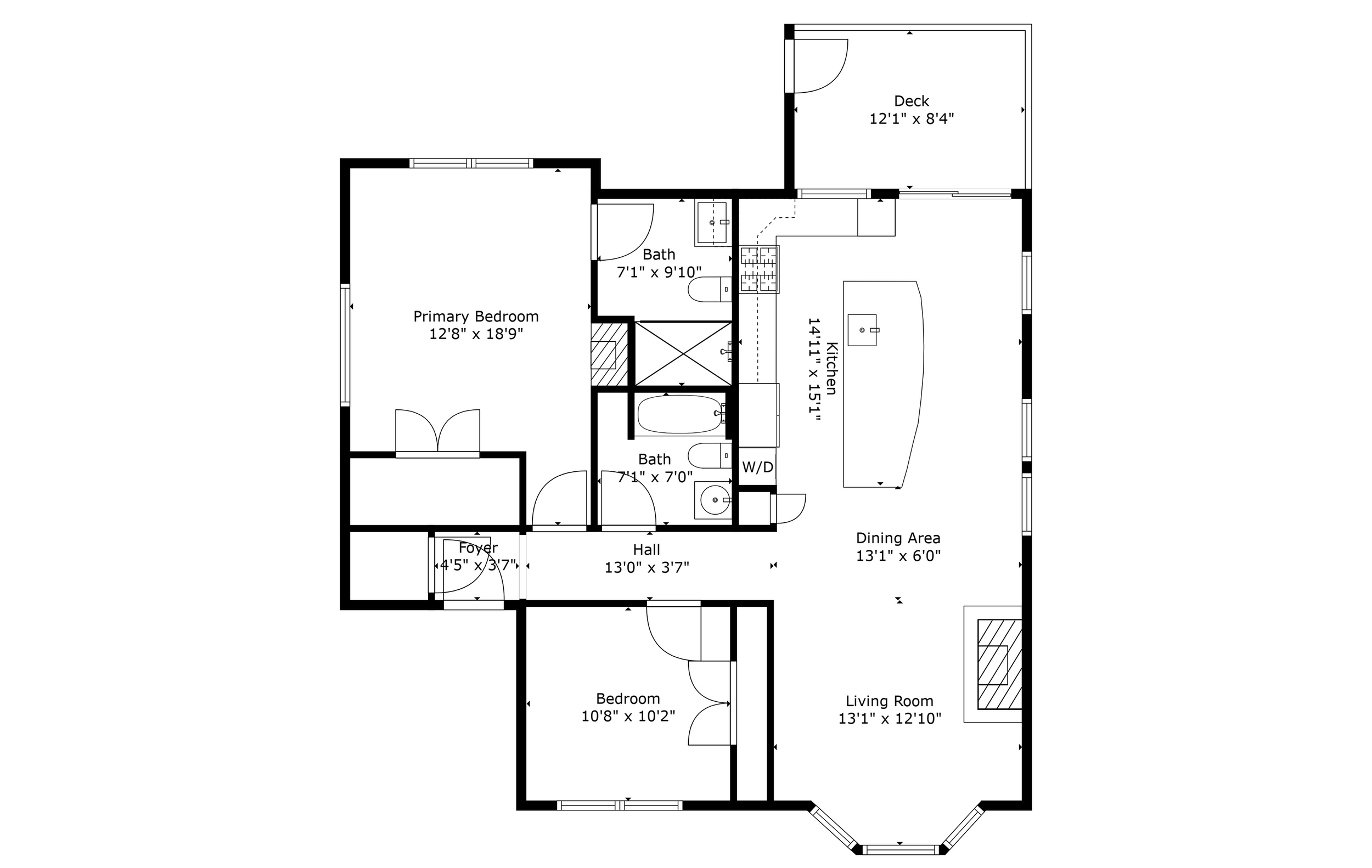 The property features a generous and well laid out open-plan living, dining and kitchen space that is the heart of this home. To the rear of the space, a sliding glass door opens onto a spacious deck, which is plumbed with a gas line for convenient outdoor grilling. The grill is included with the sale.