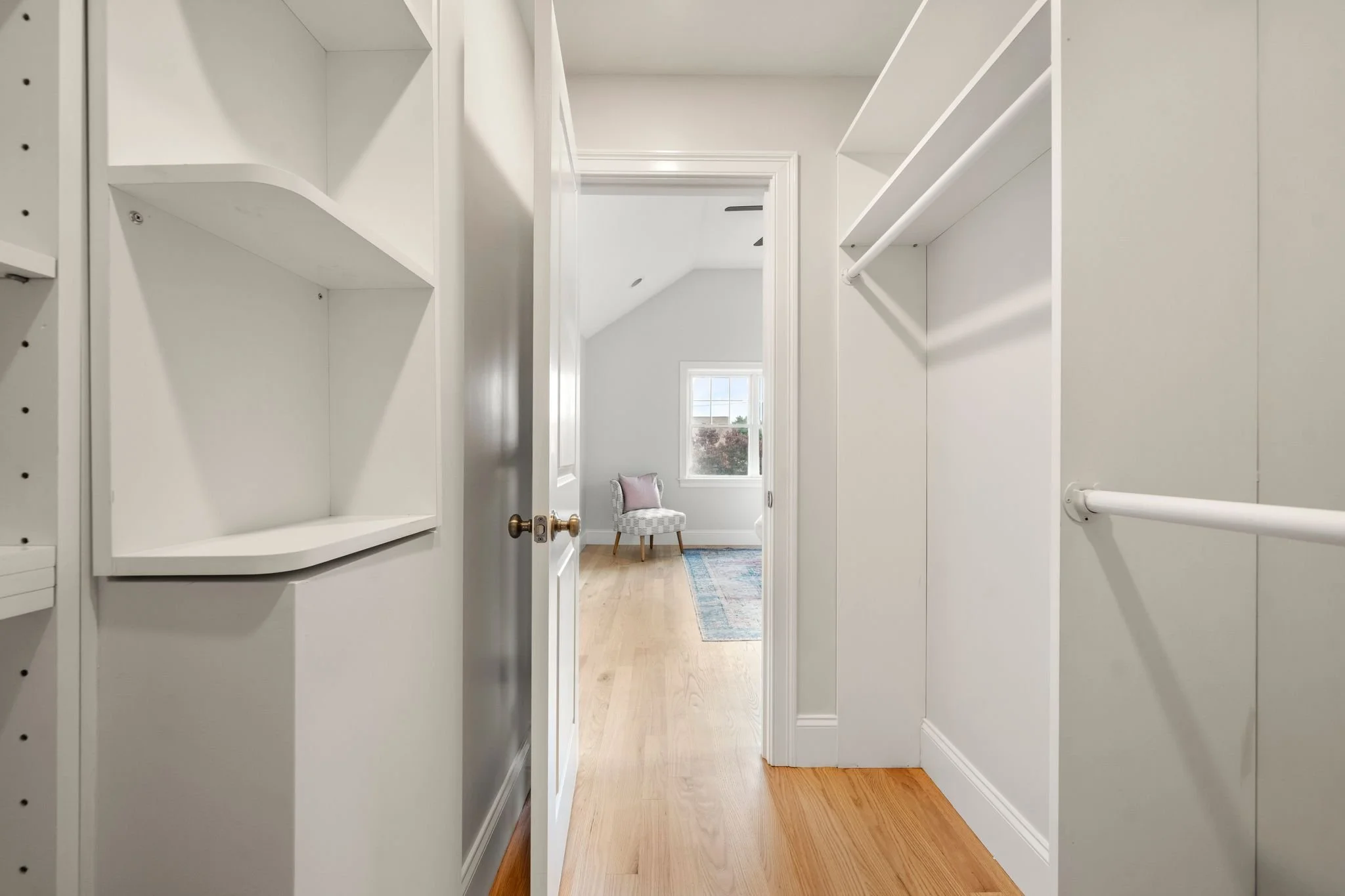 There is a spacious closet located adjacent to the side entrance for coats, boots, and other storage.