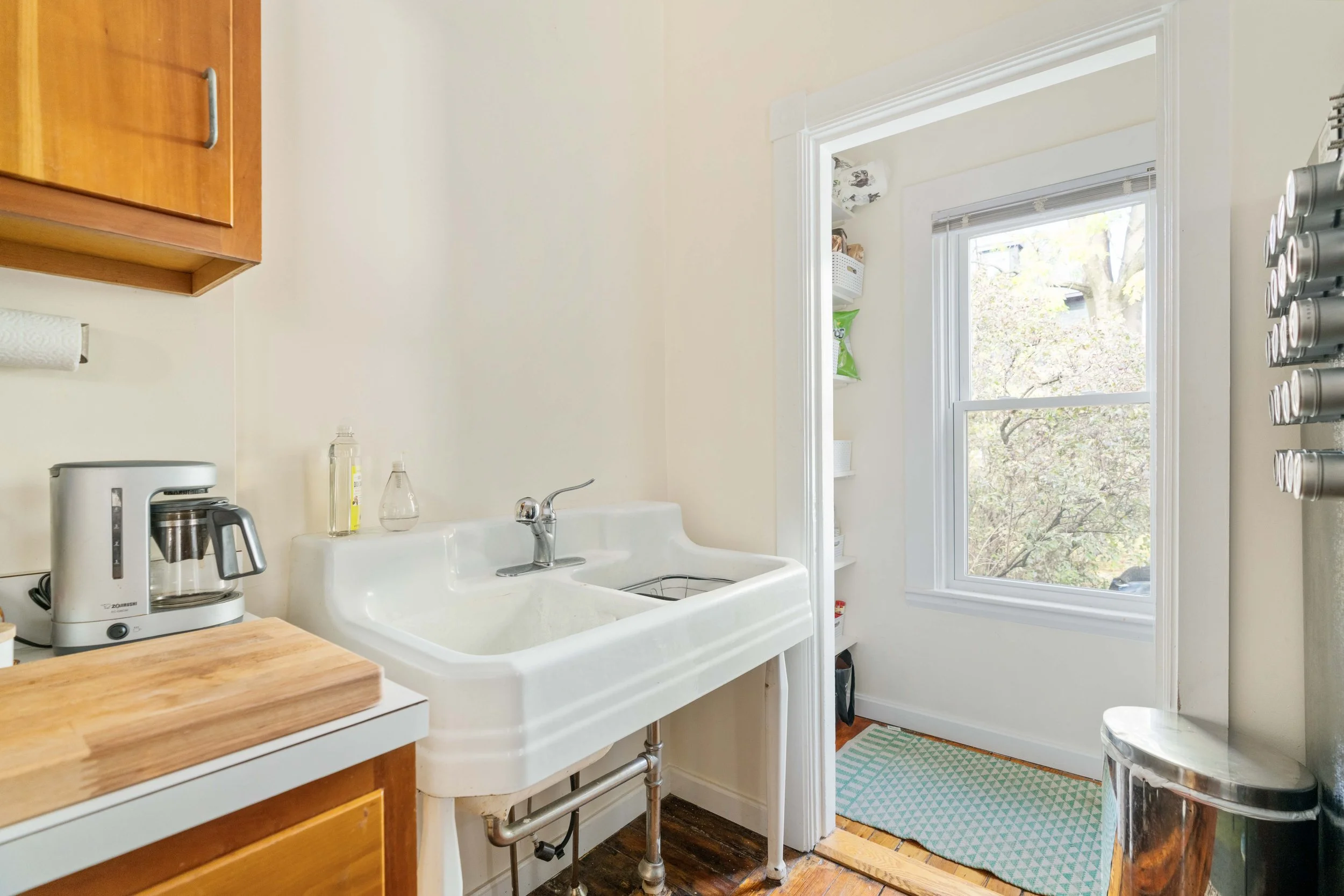 Access the basement via the staircase in the common hallway and you’ll find side-by-side coin-op laundry and plentiful space for storage. Note that the dryer is not working.