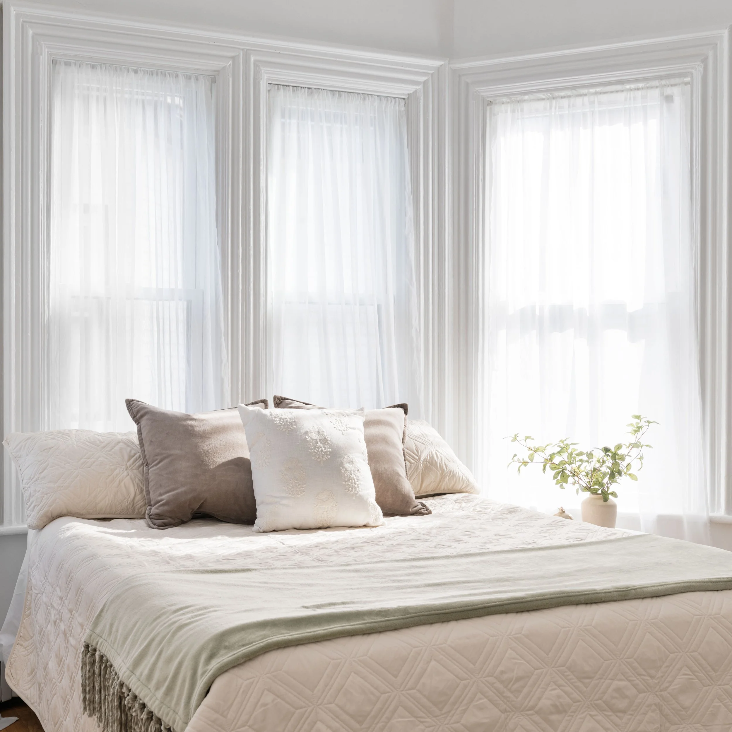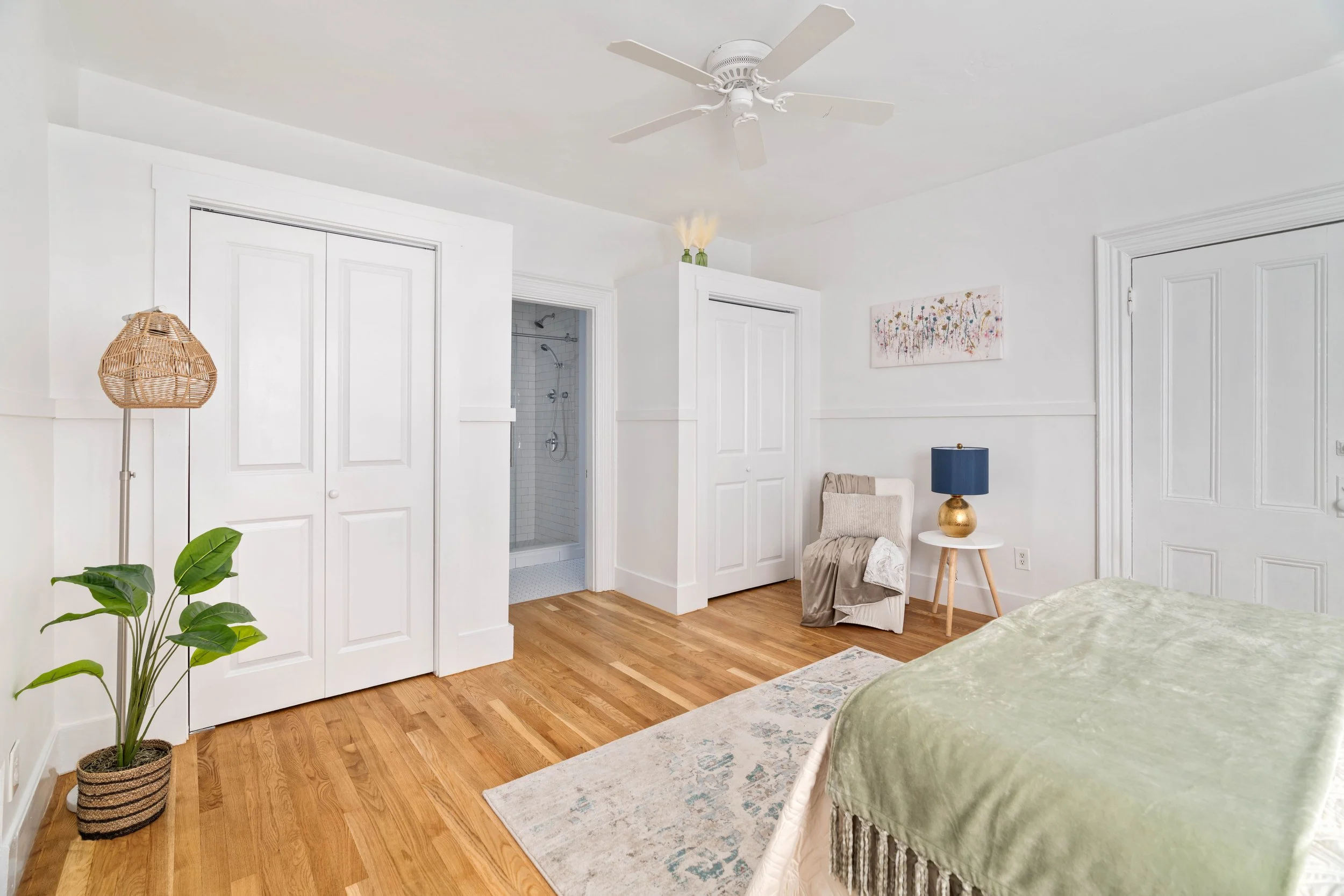 The bedroom is located at the back of the unit with 4 large windows and 2 generous closets.