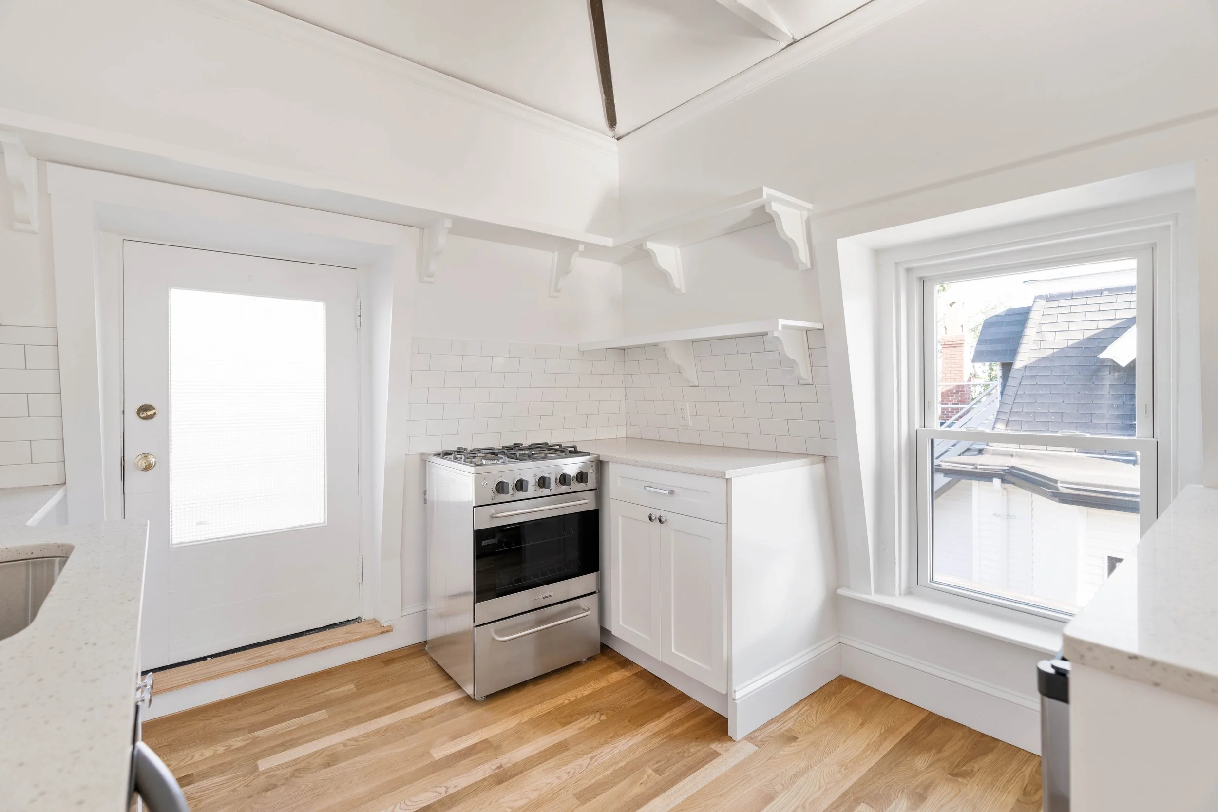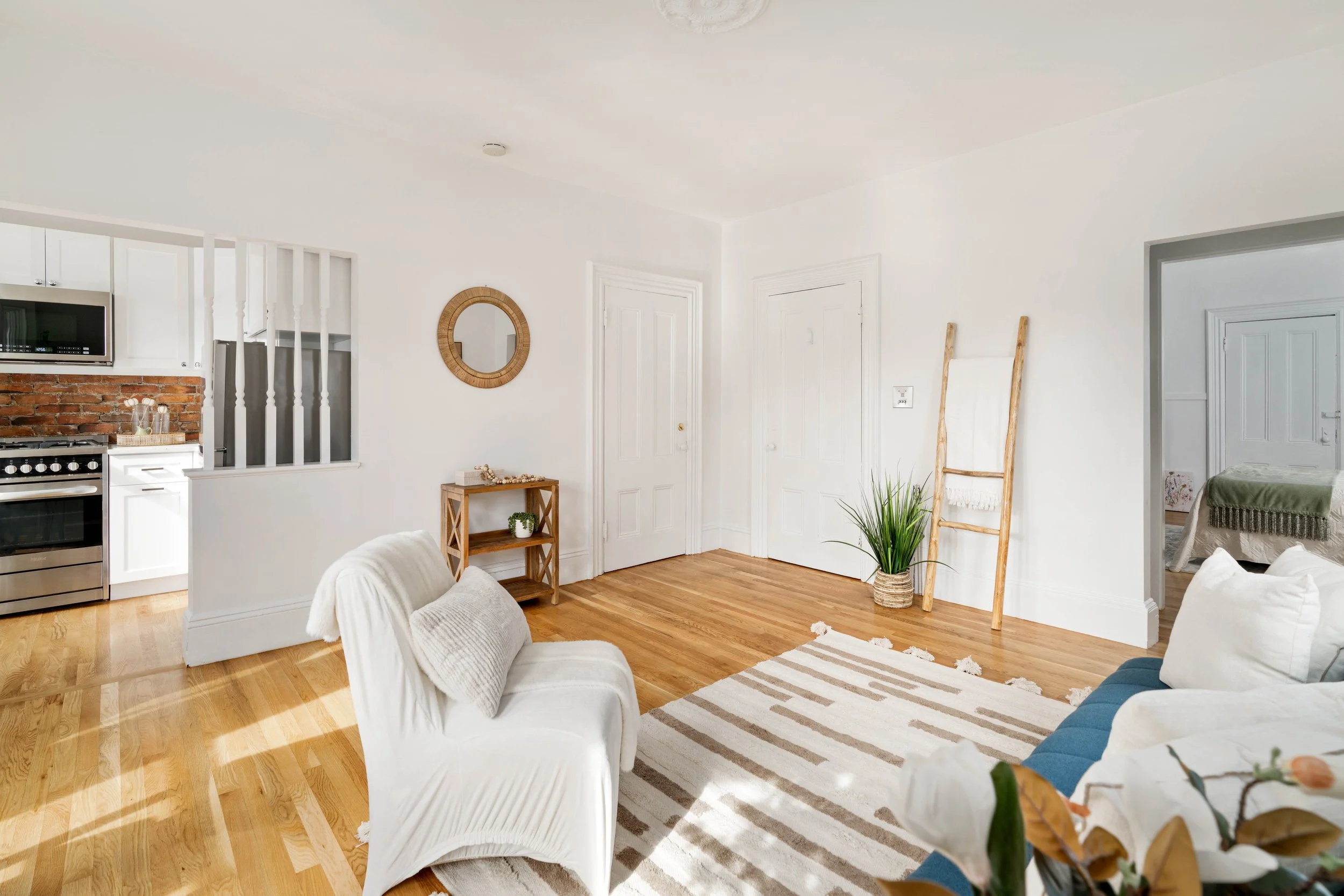 This newly renovated apartment provides a bright and open living/dining room with high ceilings, original moldings and gleaming oak floors.