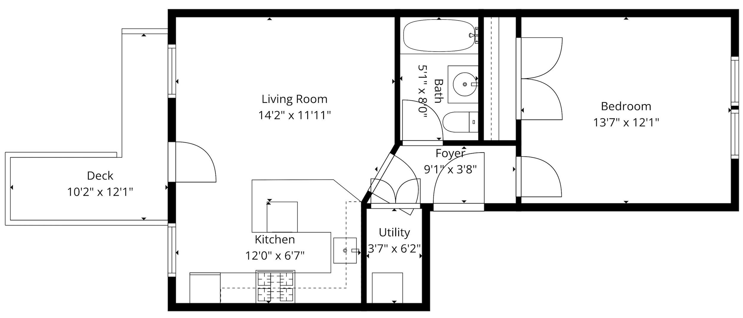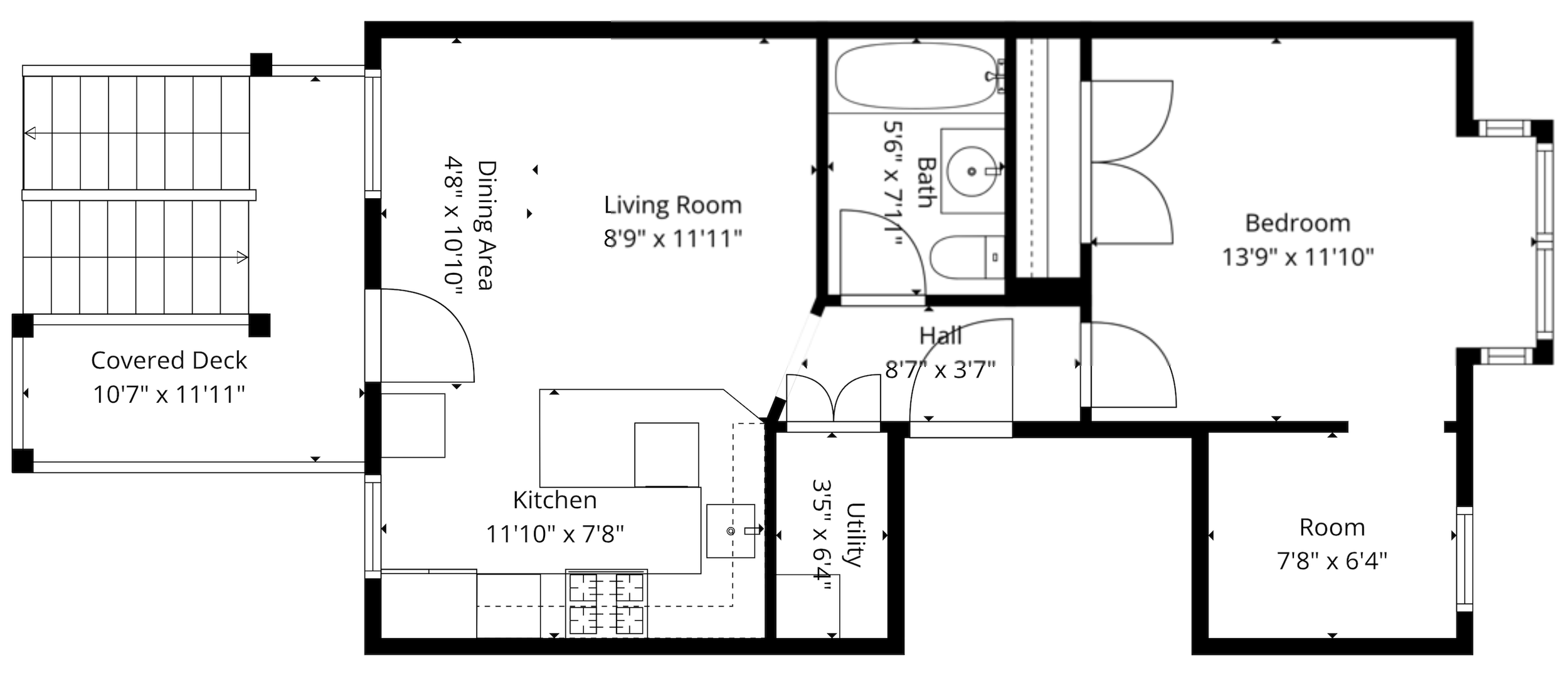 Adjoining the kitchen is a well-appointed full bathroom with a tub/shower combination.