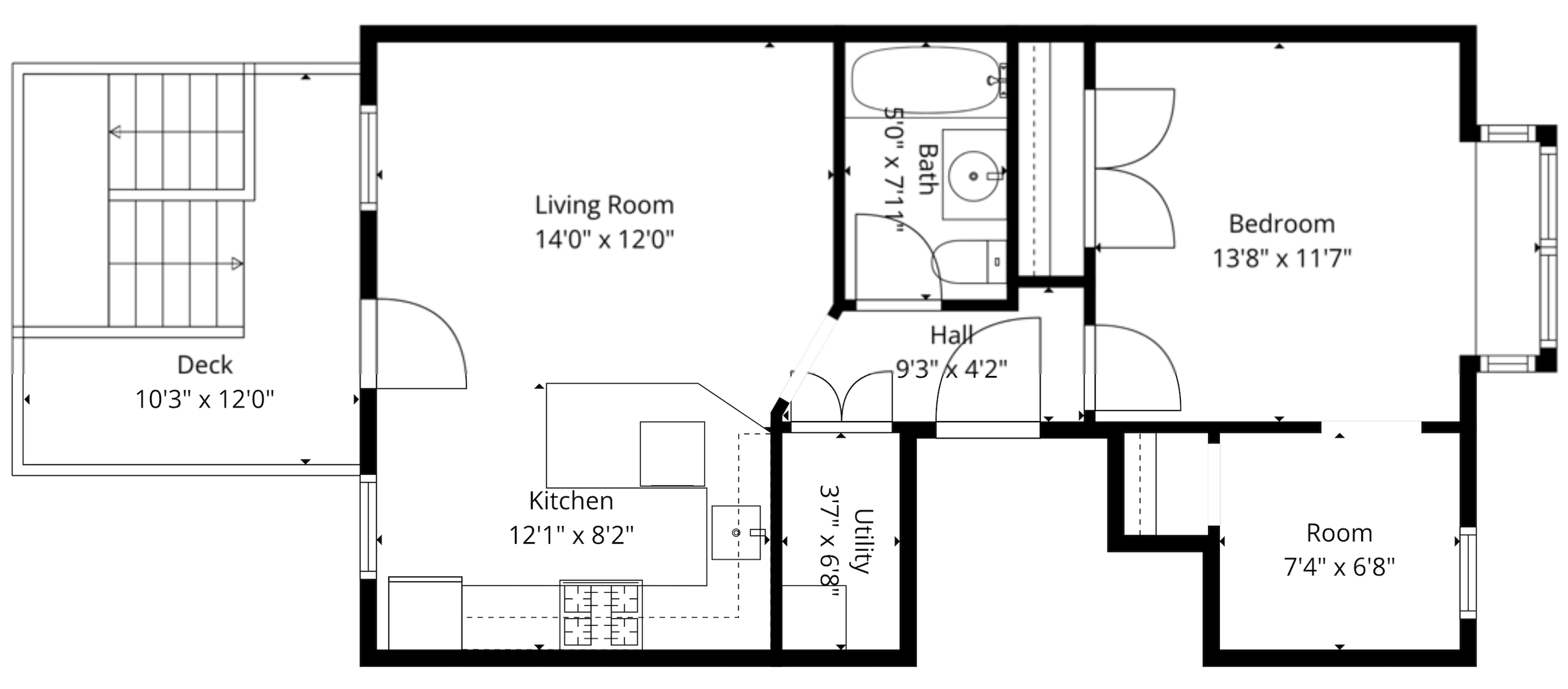 The kitchen provides seamless access to the rear common hallway, offering a private entrance to the backyard.