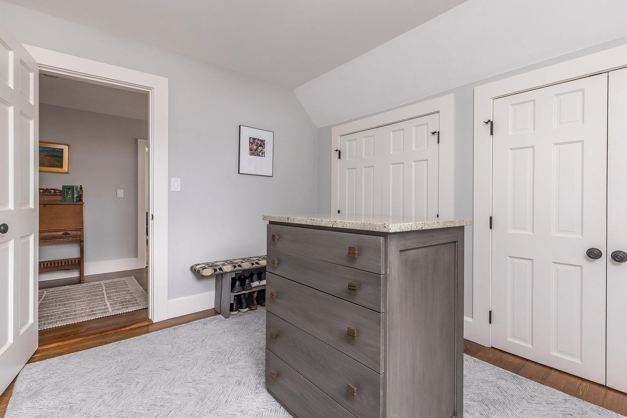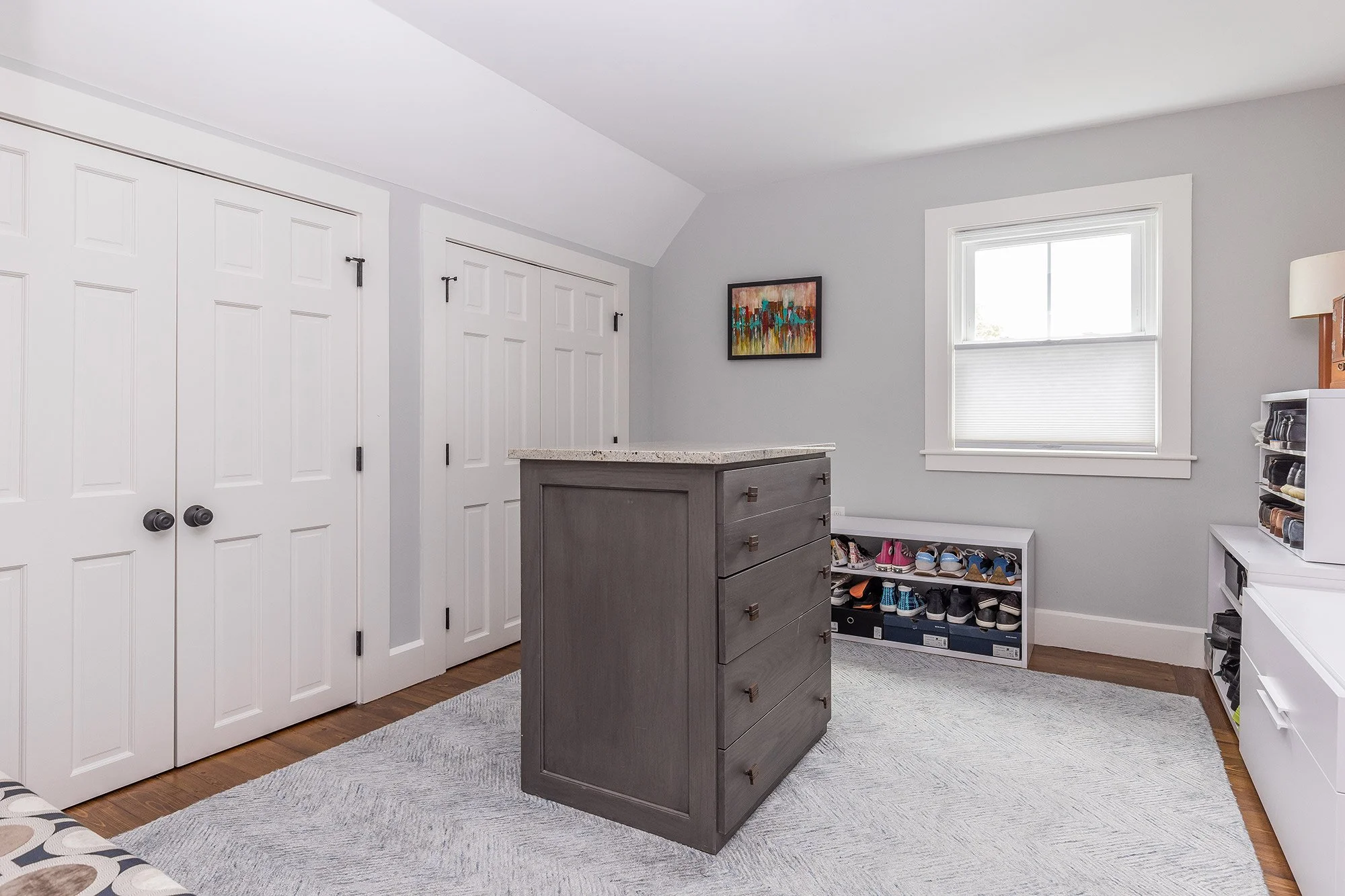 There are two bedrooms on this floor, each with good sized windows, custom honeycomb blinds, and two sets of extra deep & wide closets.