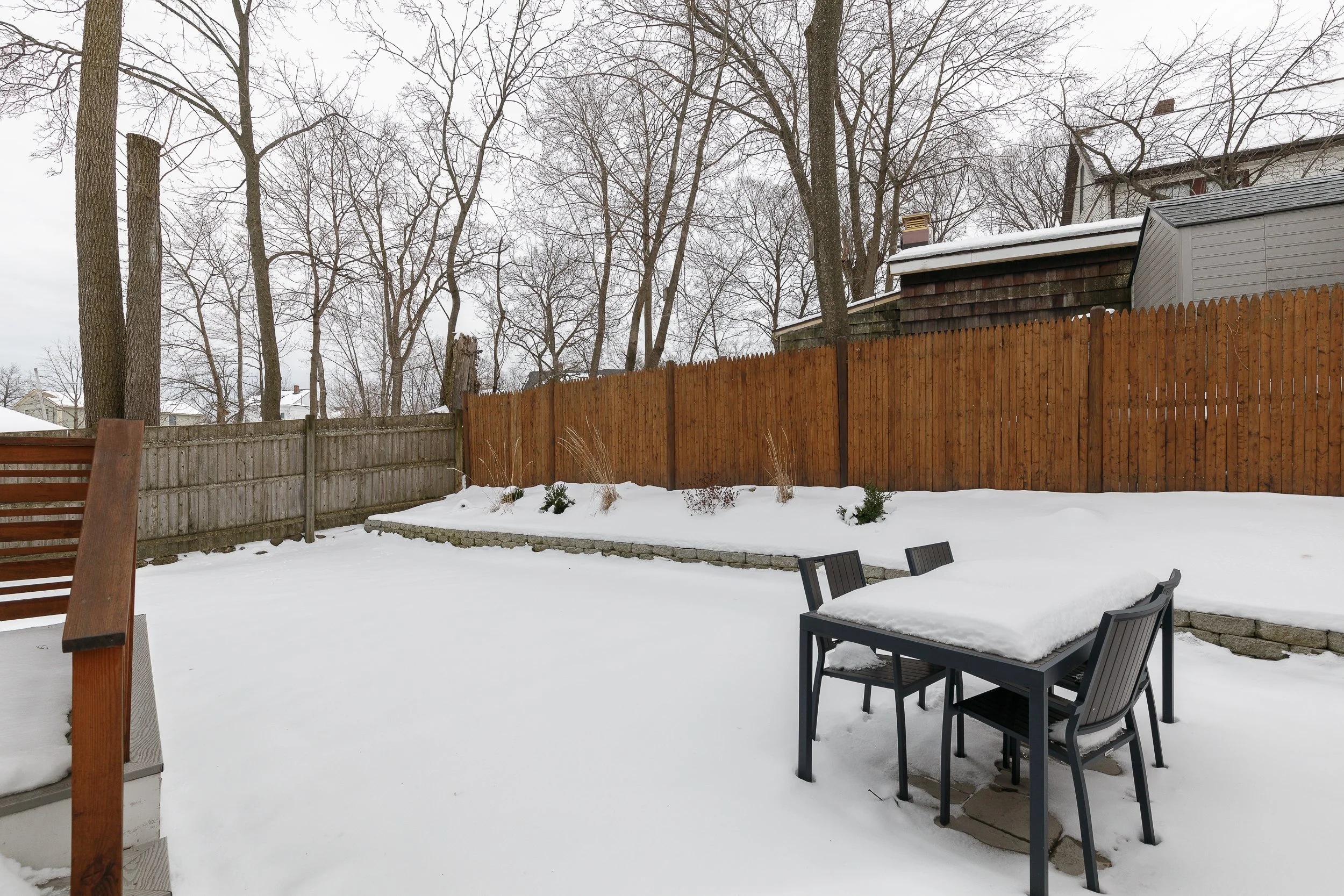 Yard: Back deck leads down to an exclusive, fenced-in backyard and patio.