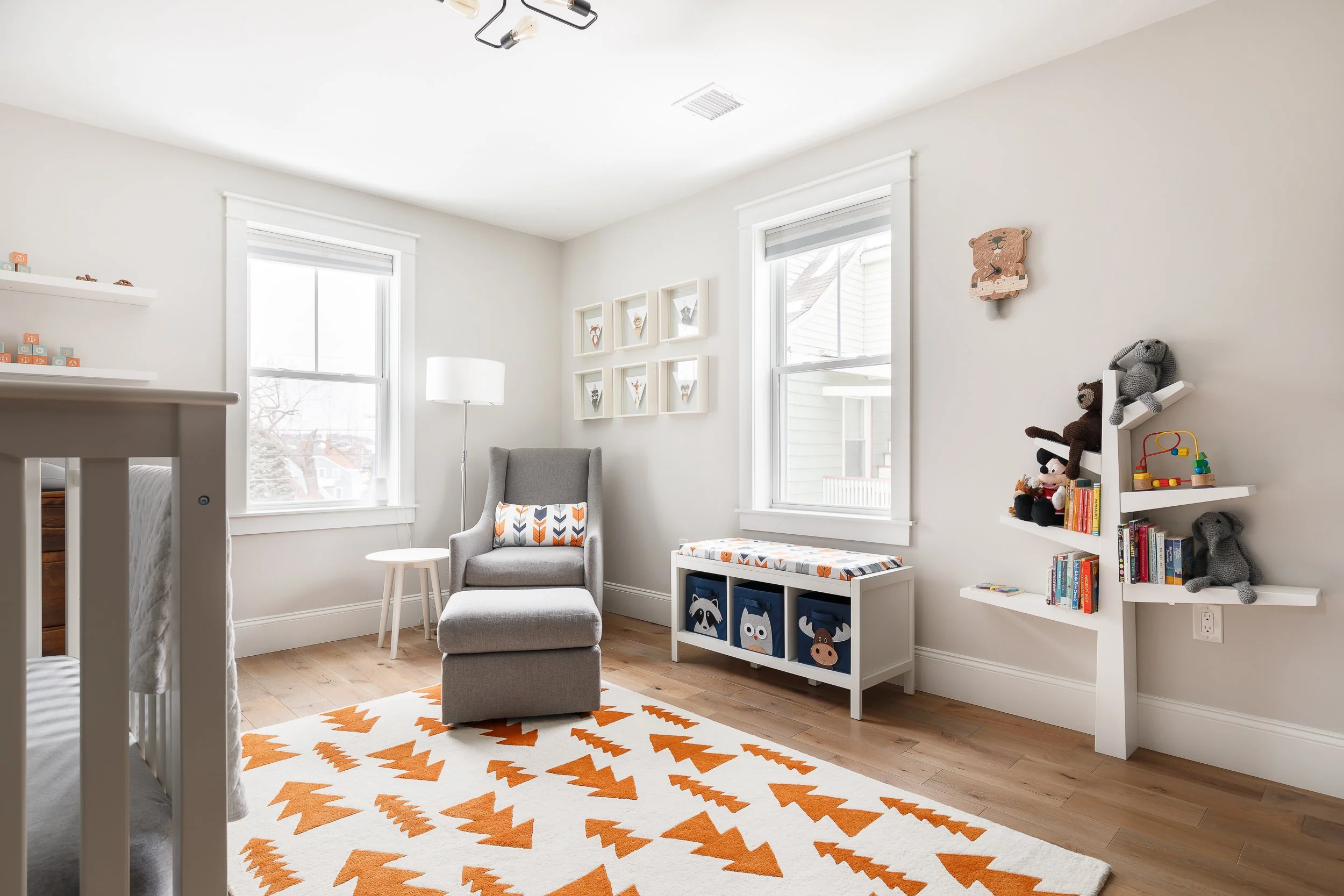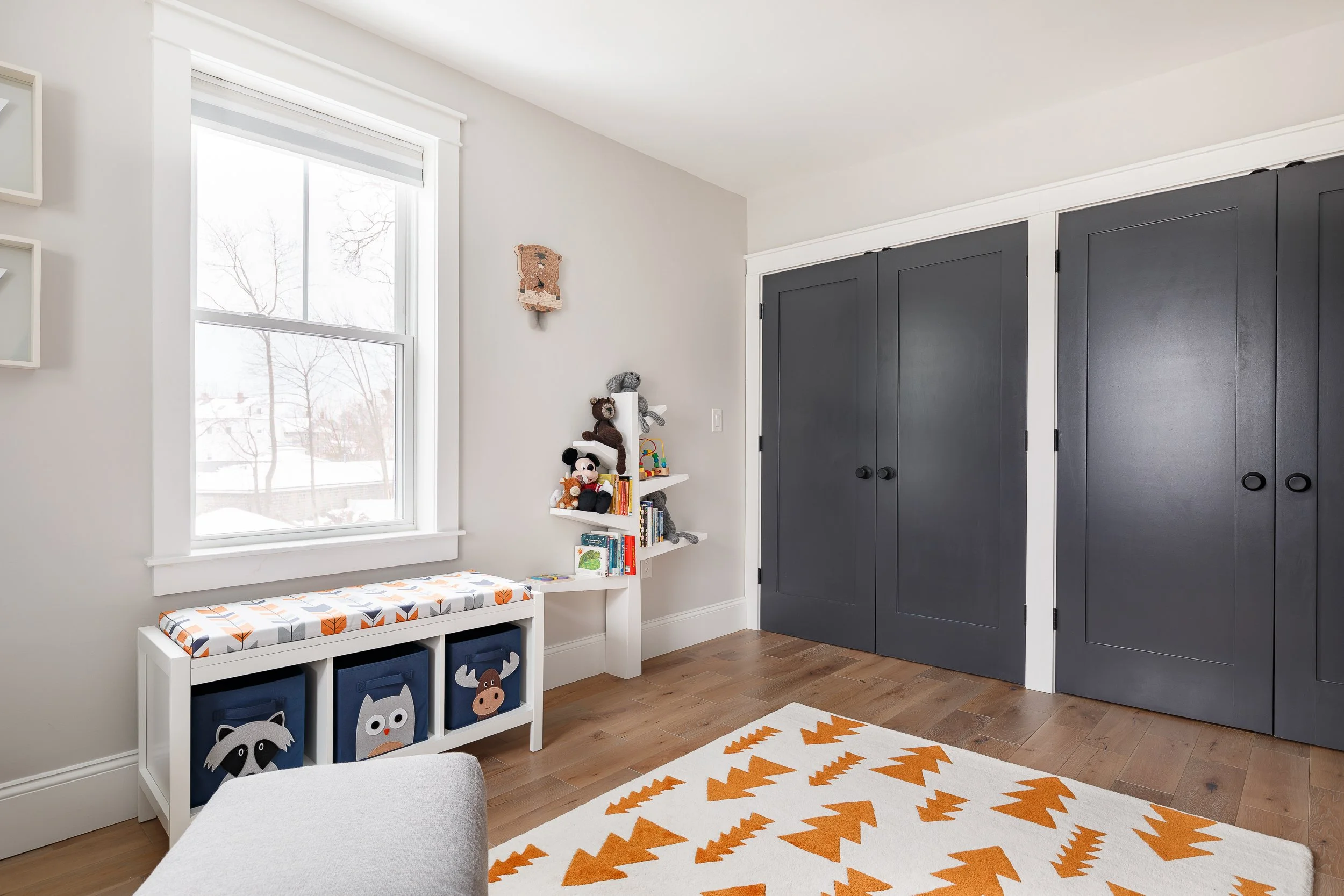 The second full bedroom, with two generous double closets, serves as an ideal nursery or guest room.