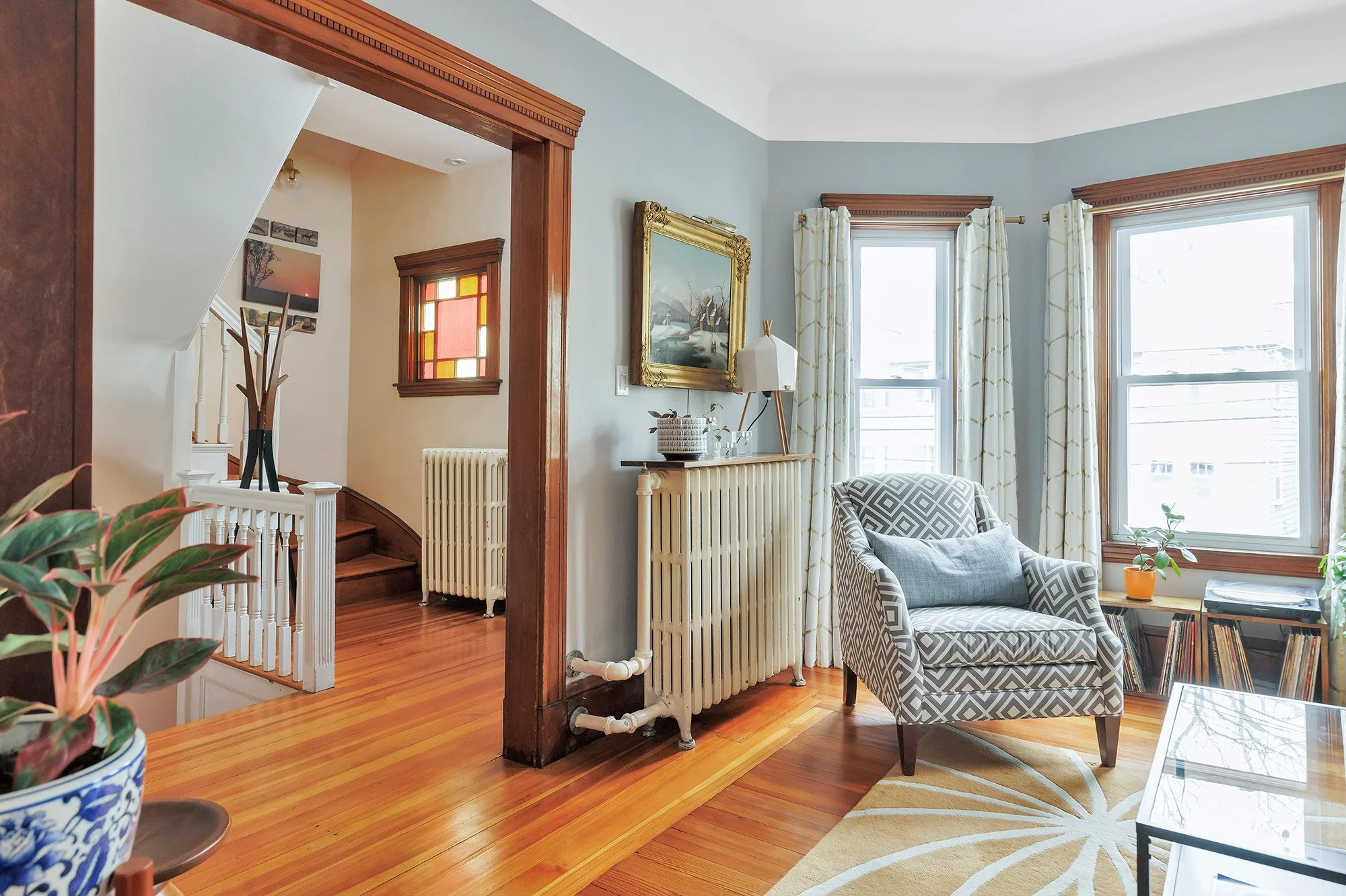 Heating/Cooling: a gas-fueled boiler w/ radiators as well as an electric heat pump with high velocity ductwork. Heat pump (2021), boiler (2006)