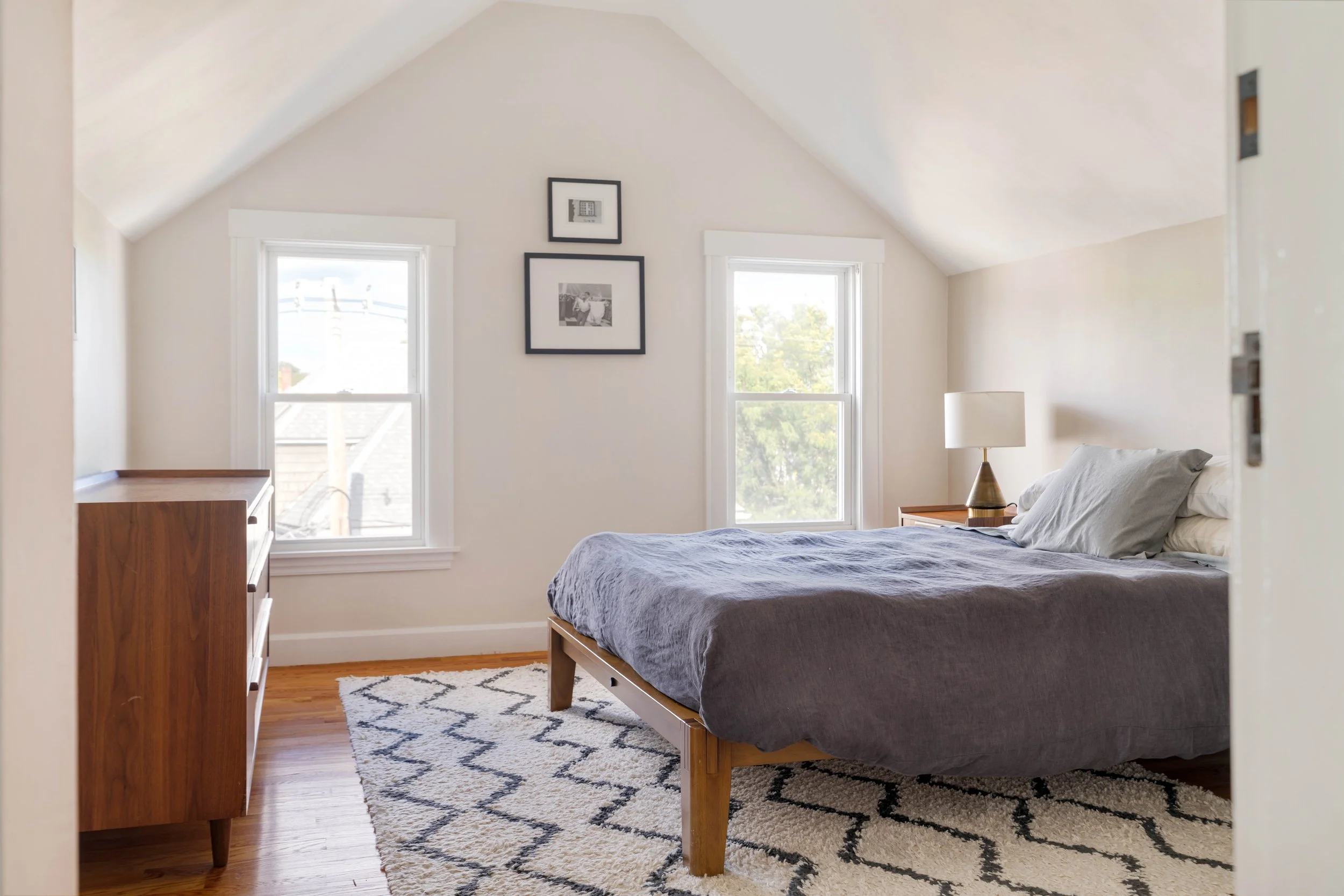 Across the hall is another bedroom with vaulted ceilings and a large double closet.