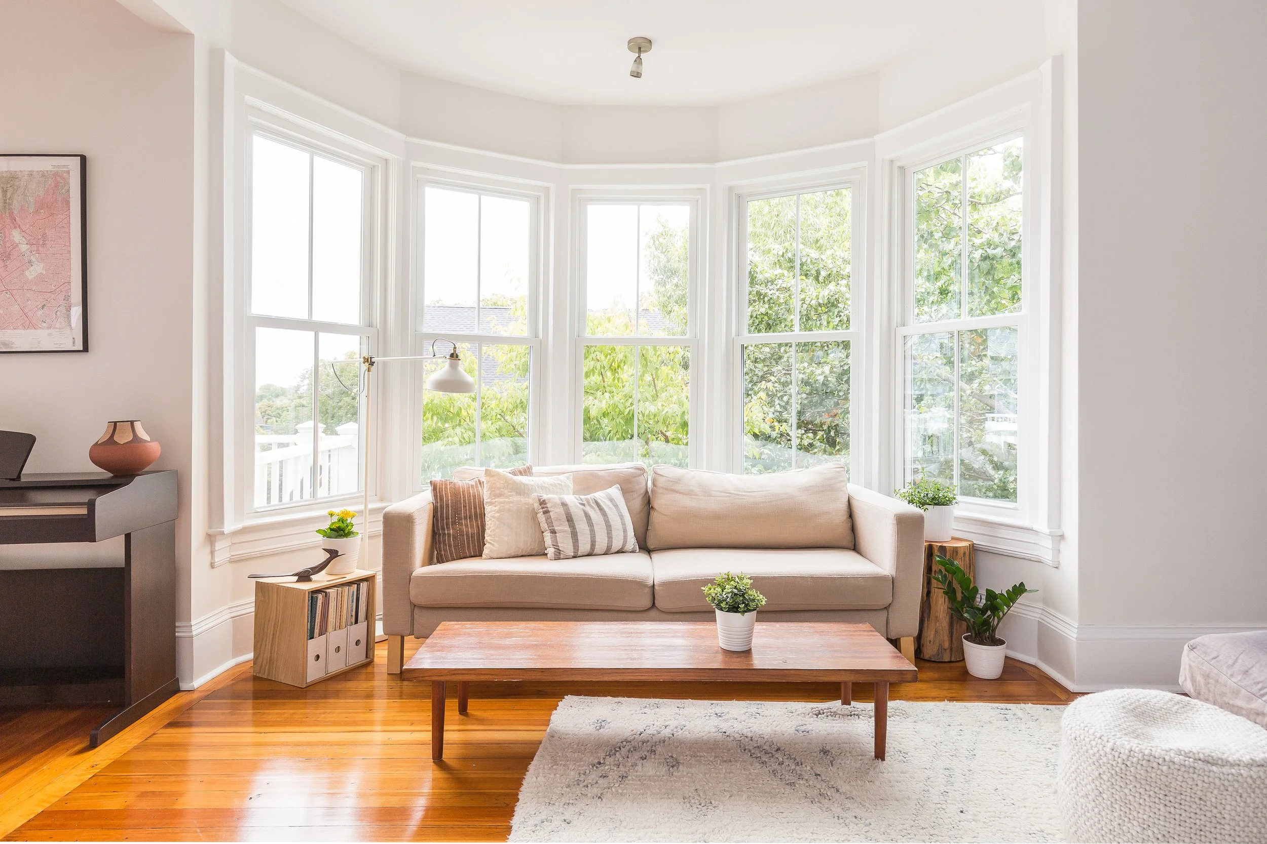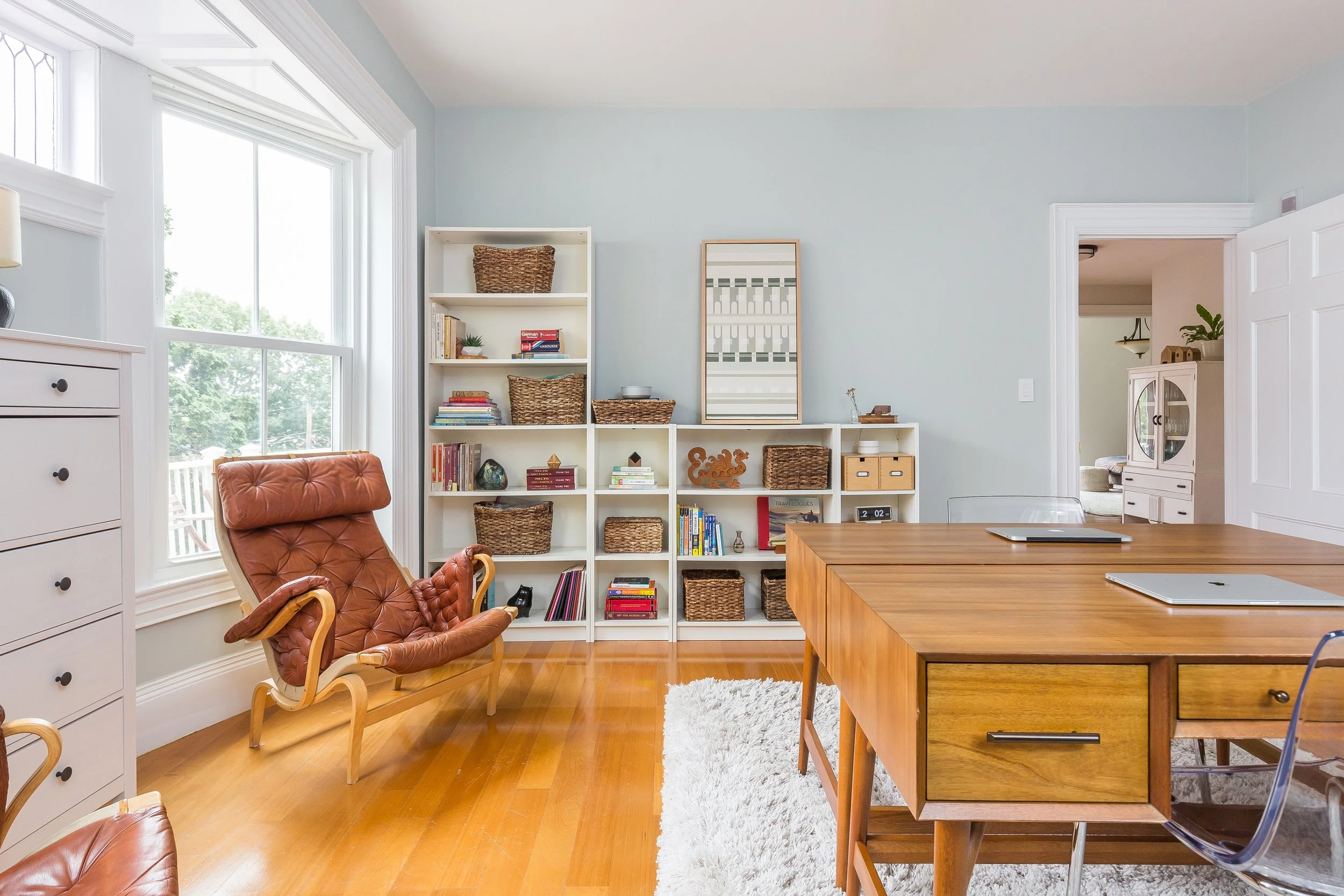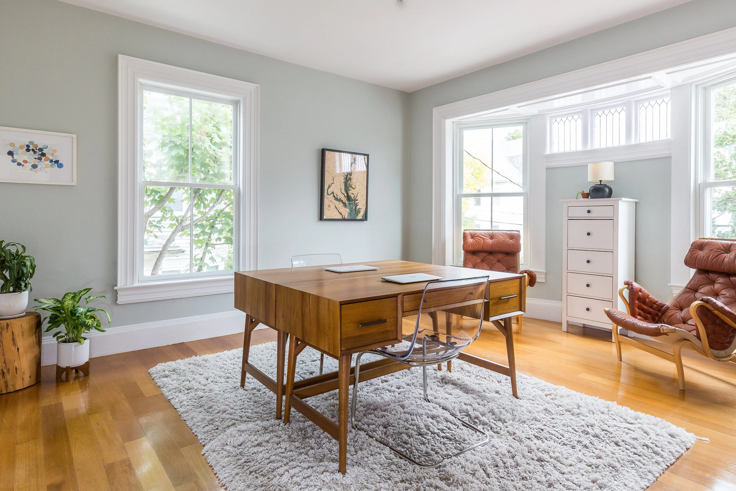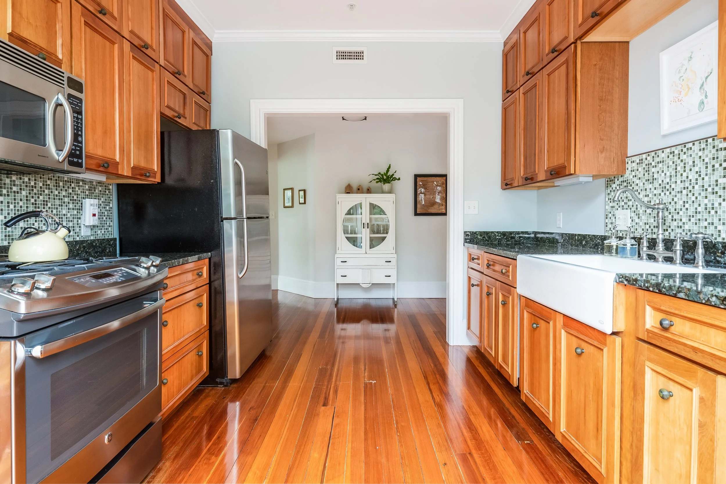 The unit is anchored in a mix of original and newer hardwood floors