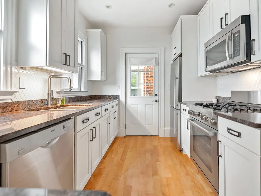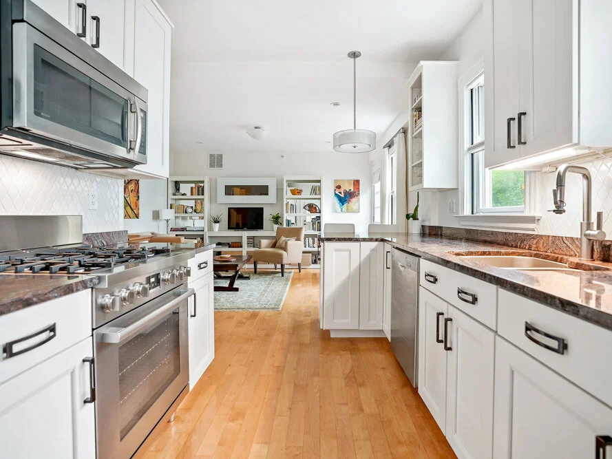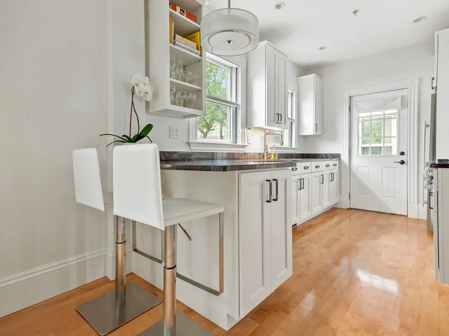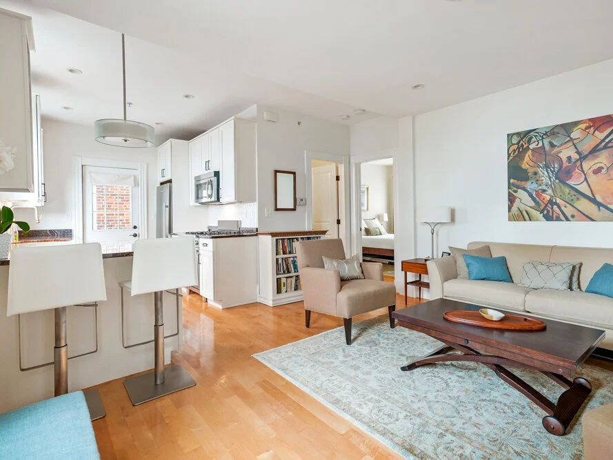 Enter this lovely condo from a private entrance through the patio on Tremont Street. Once you enter, there is a generous living room and an open plan kitchen to the left. The home features maple hardwood floors, 8½ ft ceilings, oversized windows with custom Smith & Noble blinds, and recessed lighting throughout.