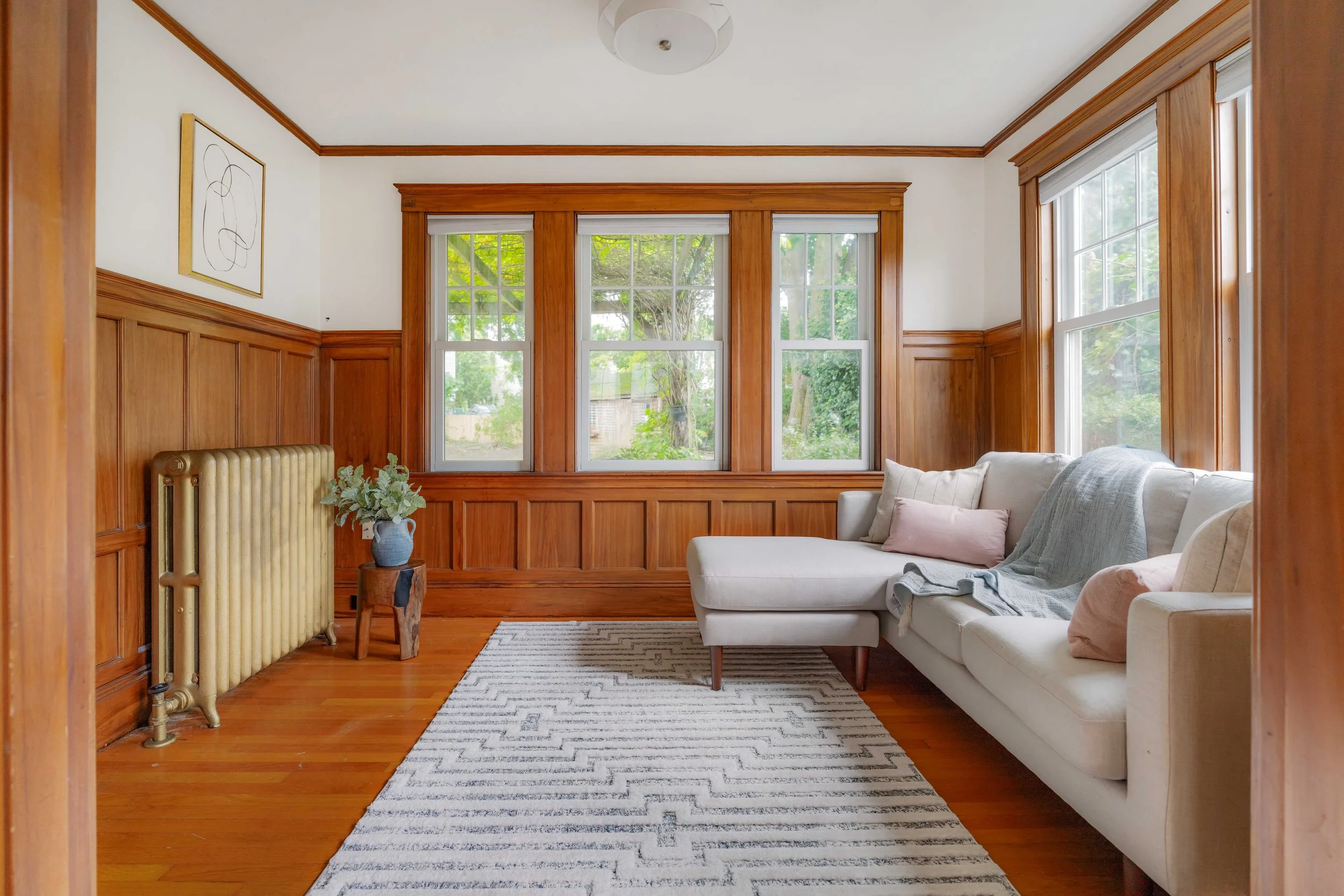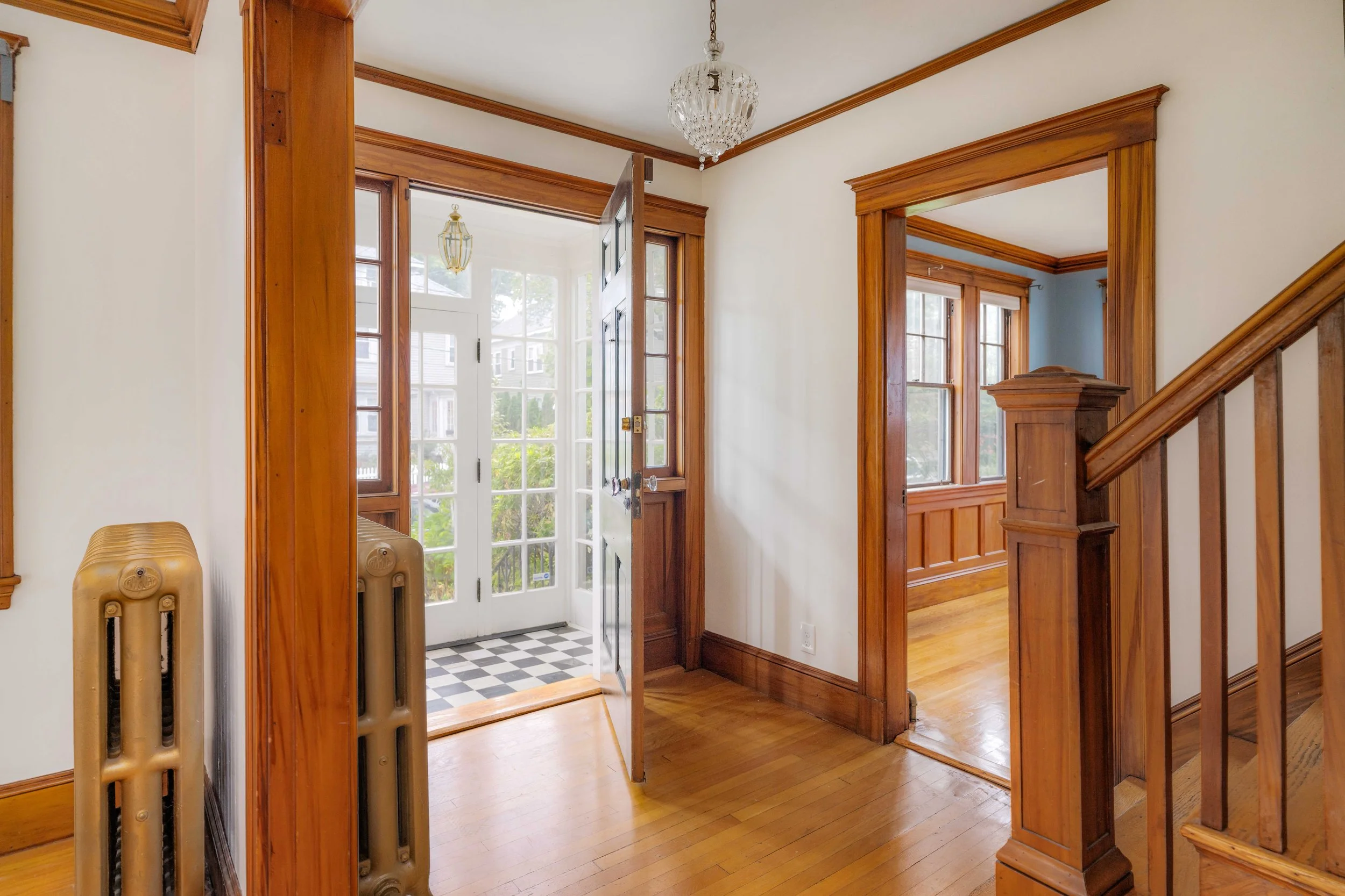 On the first floor you will find recessed lights, hardwood floors and original gumwood paneling and moldings throughout.