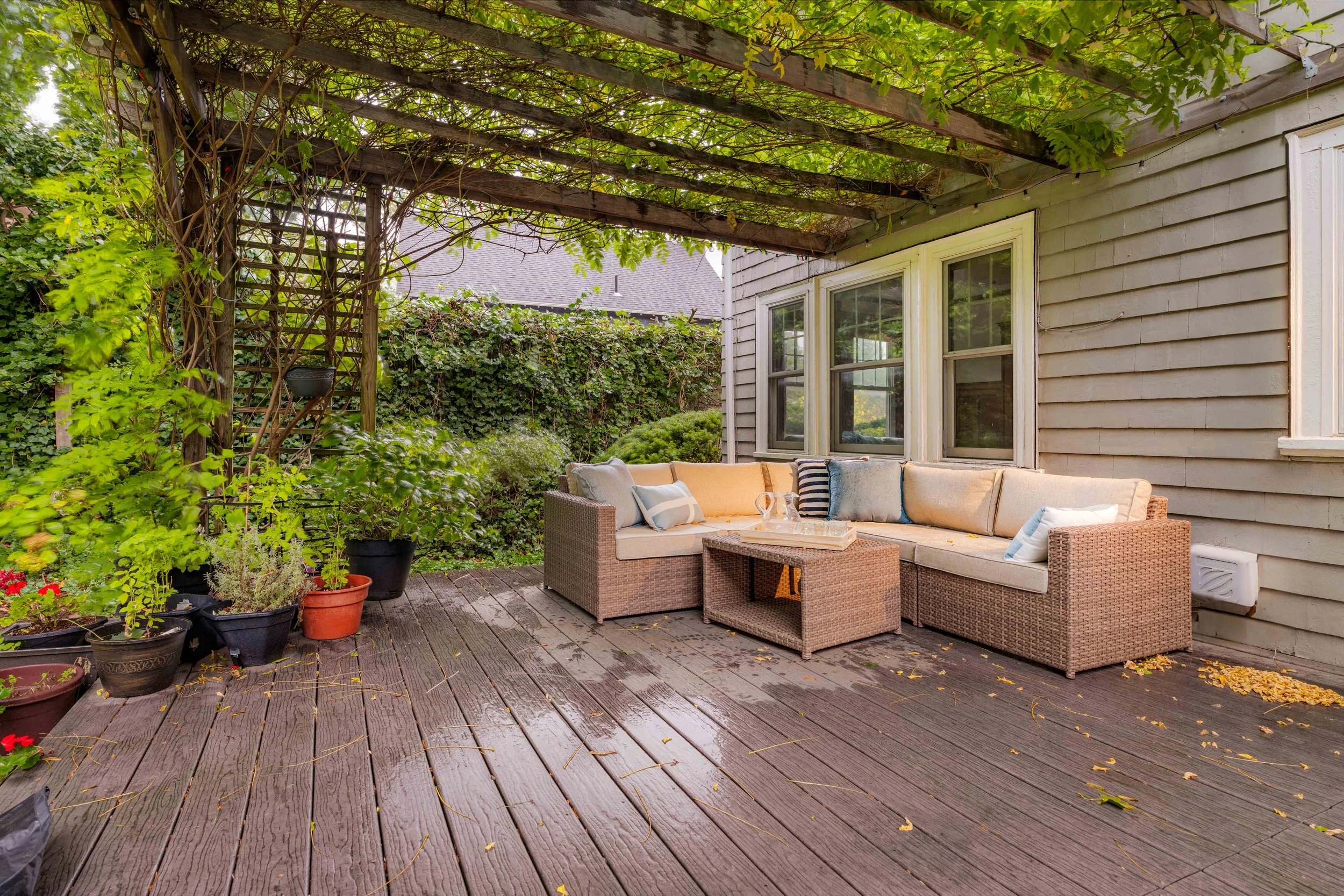 Yard: Consists of a Trex deck and level yard space with plantings. There’s also a storage shed that is included in the sale.