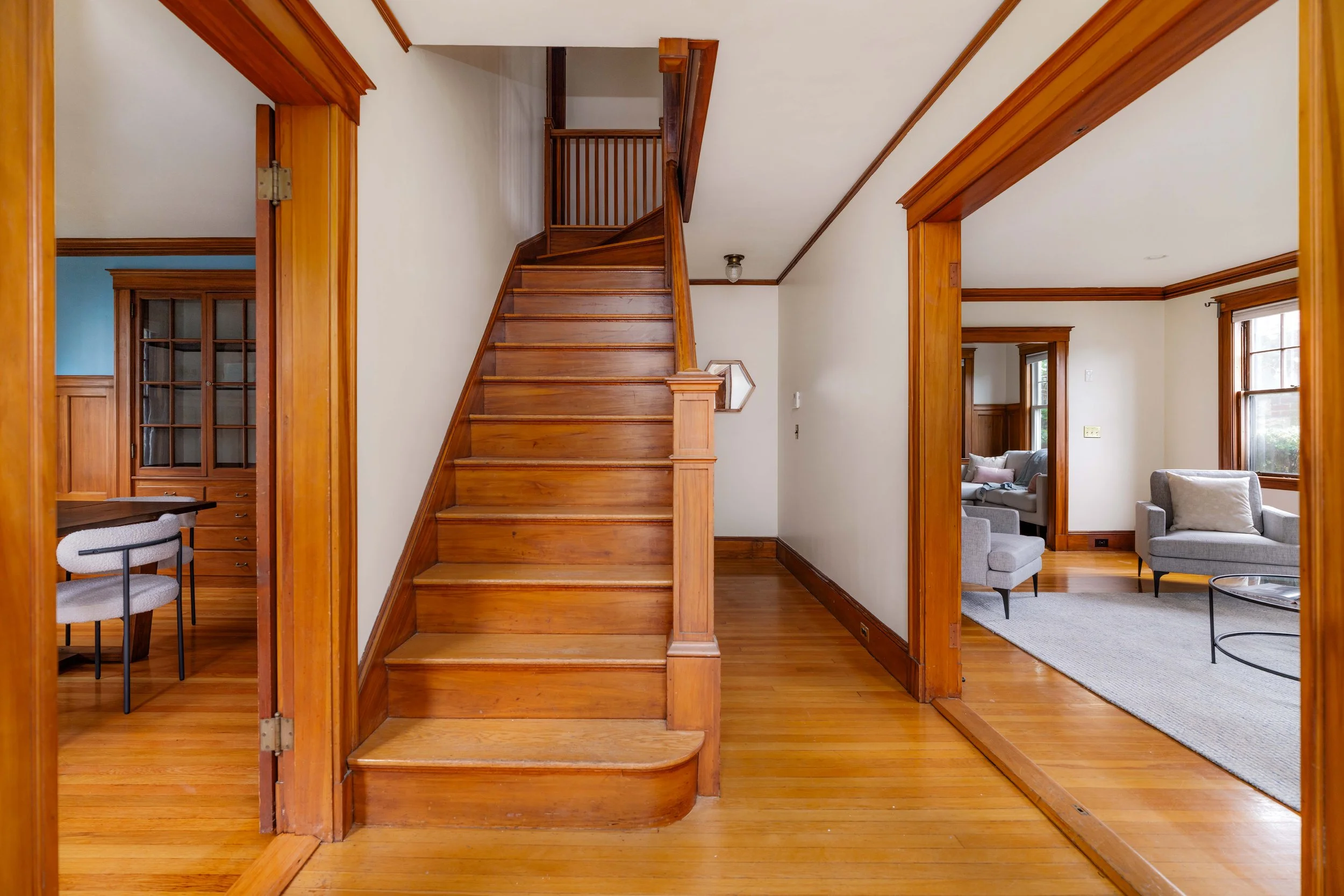 Head up the stairs from the hallway to your walk-up attic, offering great space for storage or future expansion opportunities.