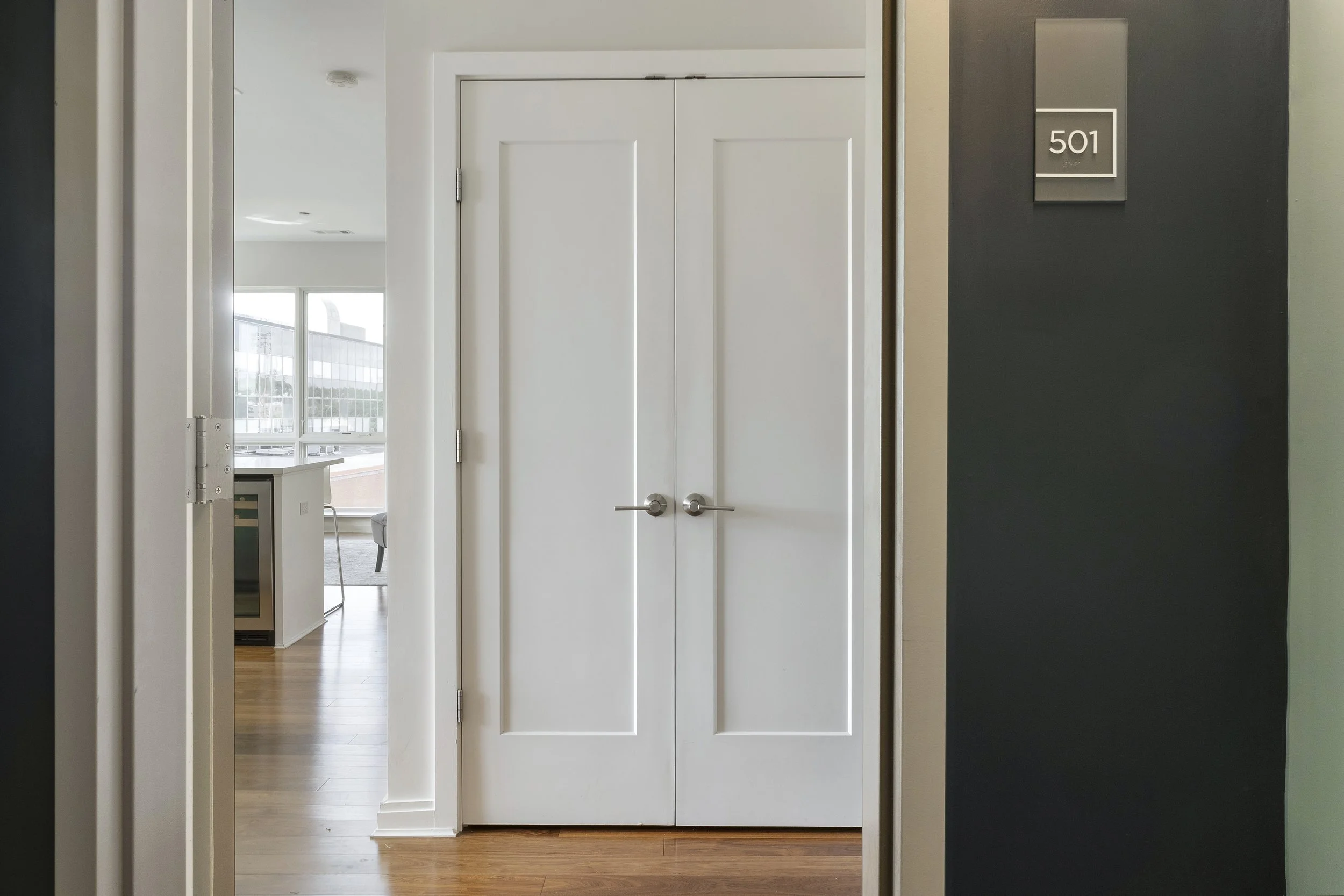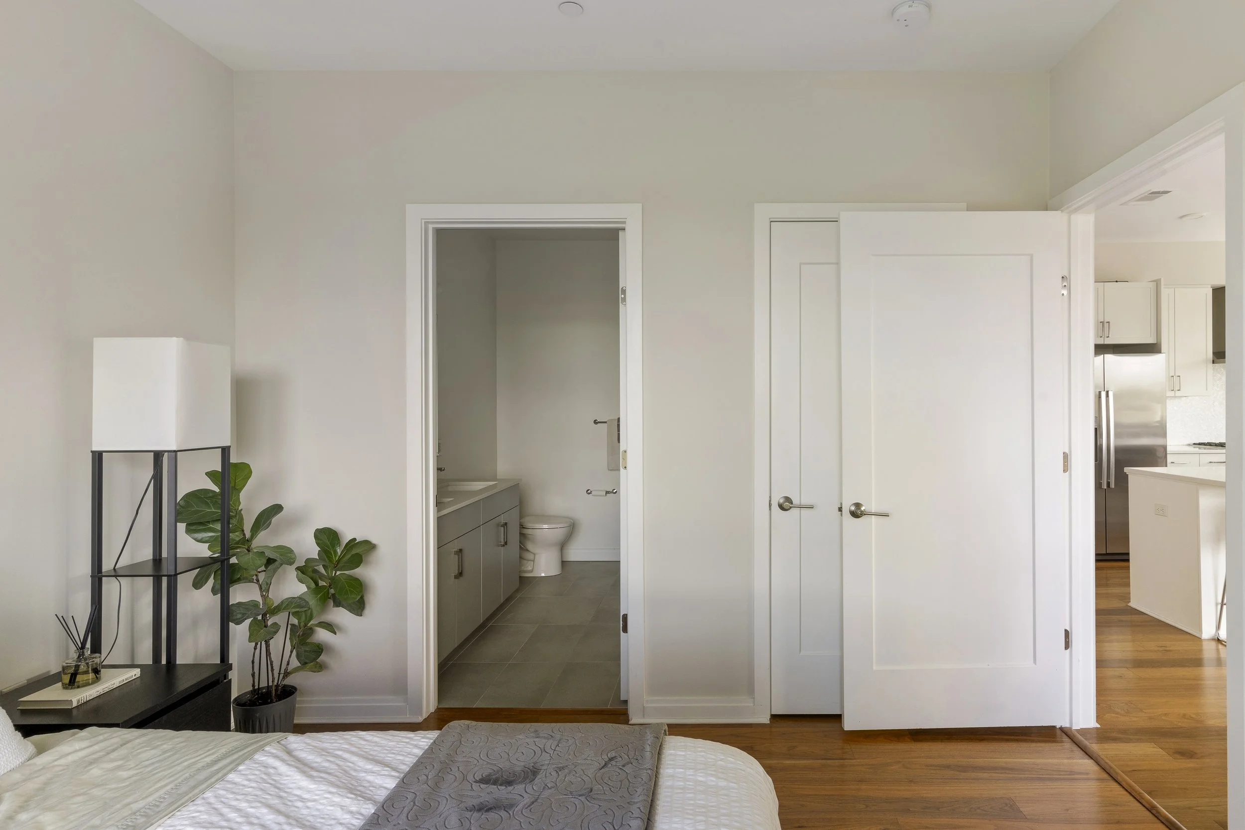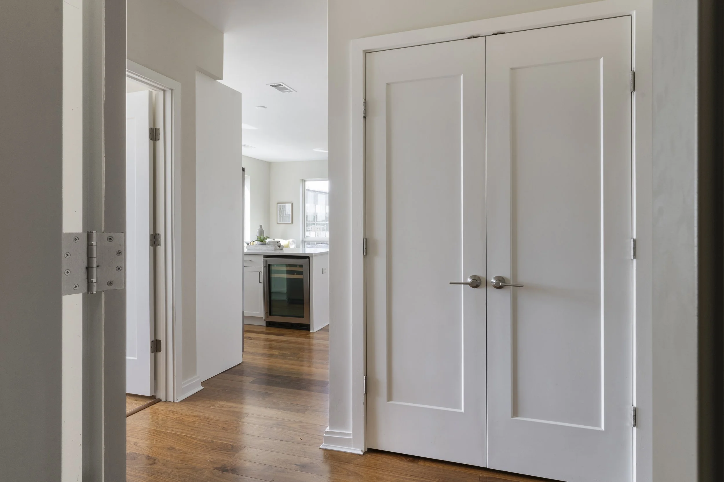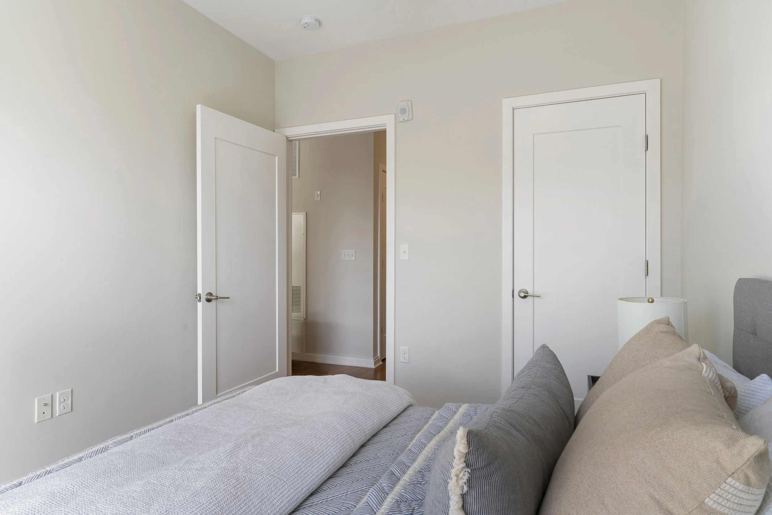 Completing the layout is a double-door coat and storage closet, conveniently located near the front door as a drop zone and positioned between the full bathroom and the secondary bedroom.