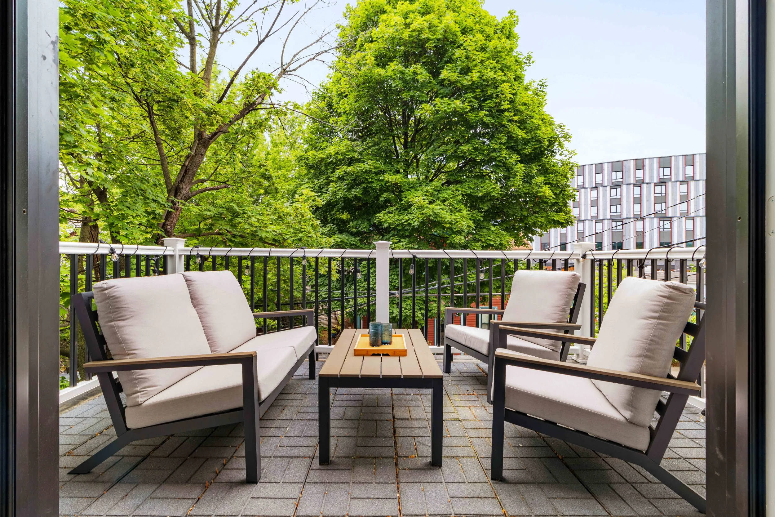 Tucked away behind the kitchen, you will find the gorgeous principal suite, a stylish powder room, in-unit laundry, and a utility closet.