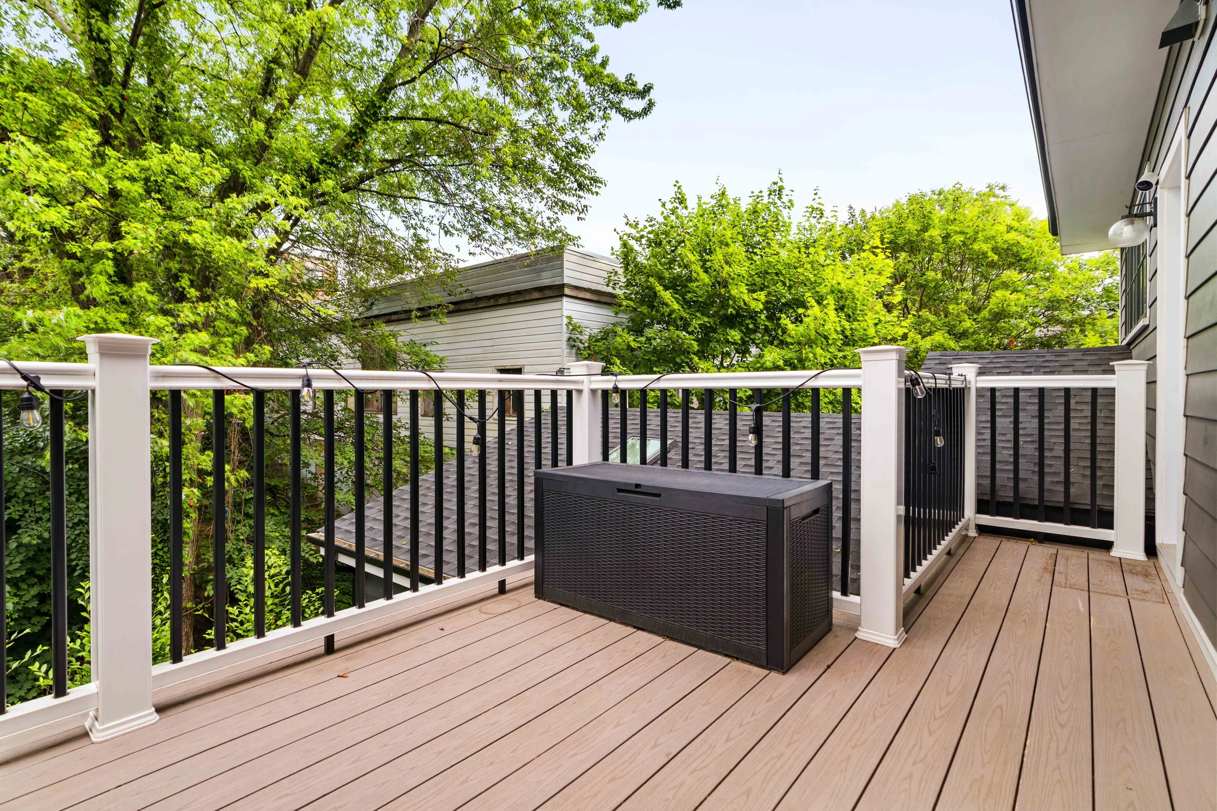 Exterior: Hardie plank siding with PVC trim and composite decking (2023).