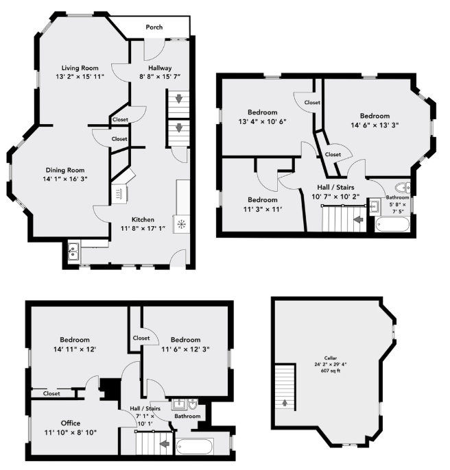 Upstairs, the home offers generously sized bedrooms, each with hardwood flooring, closets, and great natural light. The primary bedroom includes ample closet space and its own mini-split system for added comfort. A dedicated home office provides flexibility for today’s lifestyle.
