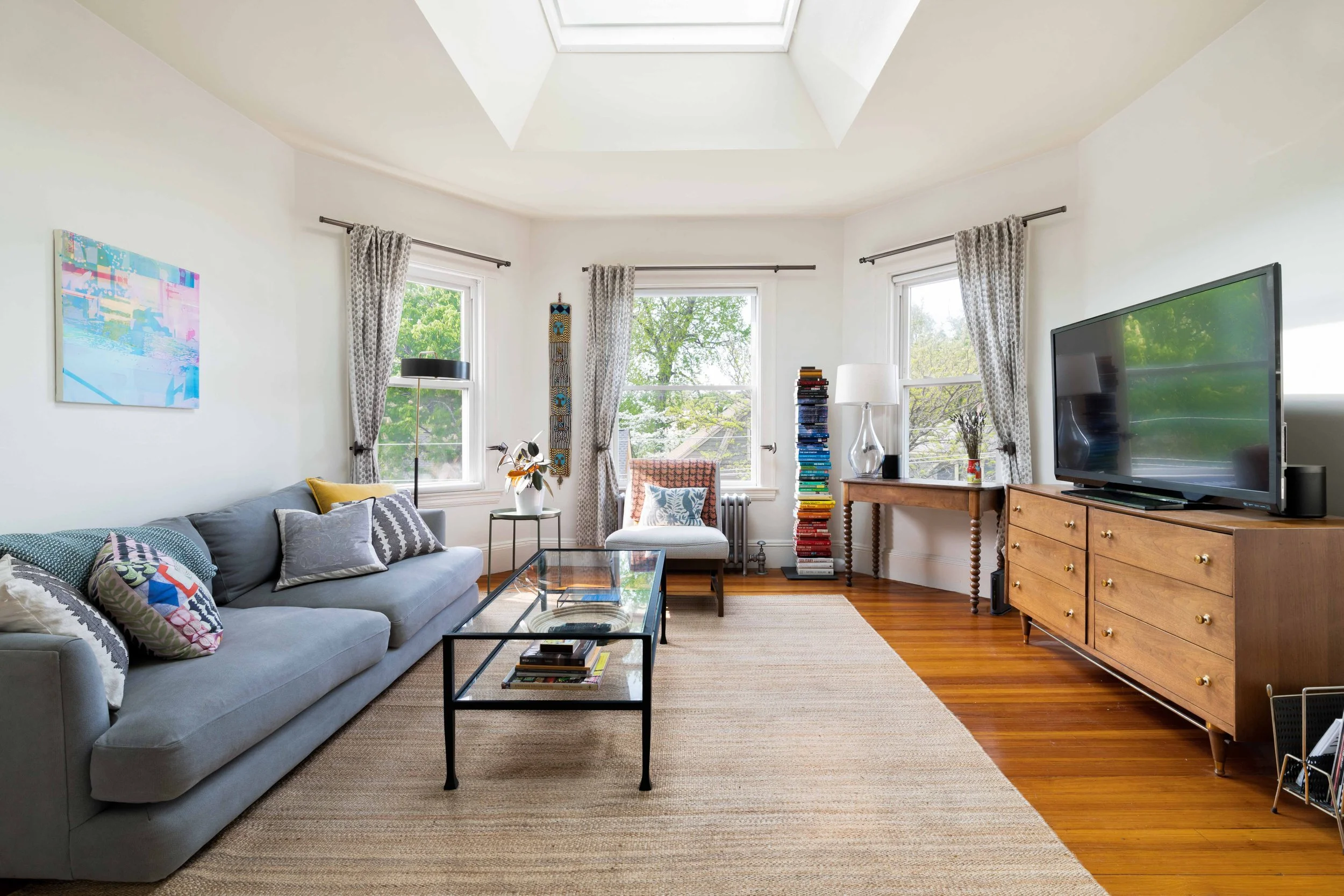 Experience city living at its finest with this stunning top floor condo boasting a large private roof deck and exclusive driveway parking. Situated blocks to Harvard and Porter Sq, in the highly desirable Agassiz neighborhood, lies a sun-filled 2 bed + office condo that perfectly balances period detailing with contemporary finishes across a flexible layout. This charming home features high ceilings with skylights, bay windows, pocket doors, fir hardwoods, transom windows, and updated lighting throughout. The spacious living room, a bright open-concept kitchen and dining room, 2 well-proportioned bedrooms, a bonus office, and a full bath are all connected by a central hallway. The kitchen features stainless appliances, white cabinetry, and a large pantry. In-unit laundry, basement storage, and cooling through mini splits completes this offering. Close to Harvard University, 2 T Stations, Dear Annie, R.F. O’Sullivans, Bagelsaurus, Whole Foods, Market Basket, and many other shops, cafes, and restaurants.