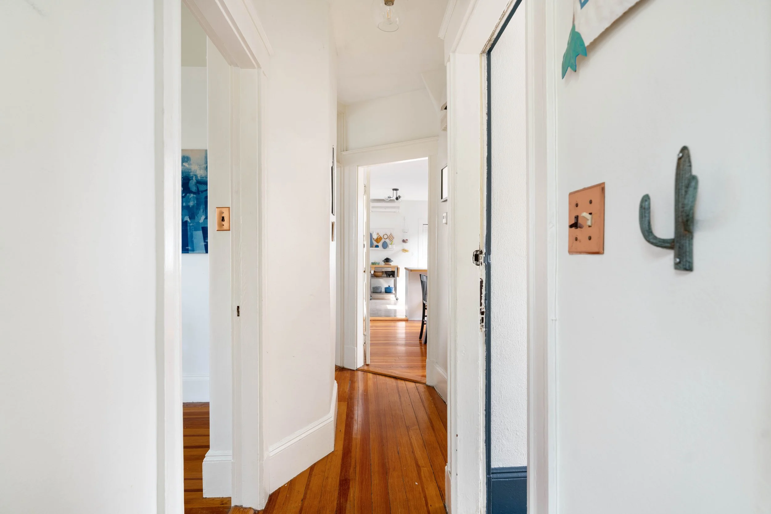 Enter this lovely condo from the well-kept shared front porch. Walk through the beautifully maintained common stairway to this top floor condo. You are immediately greeted by an abundance of natural light in the entry hall of the home.
