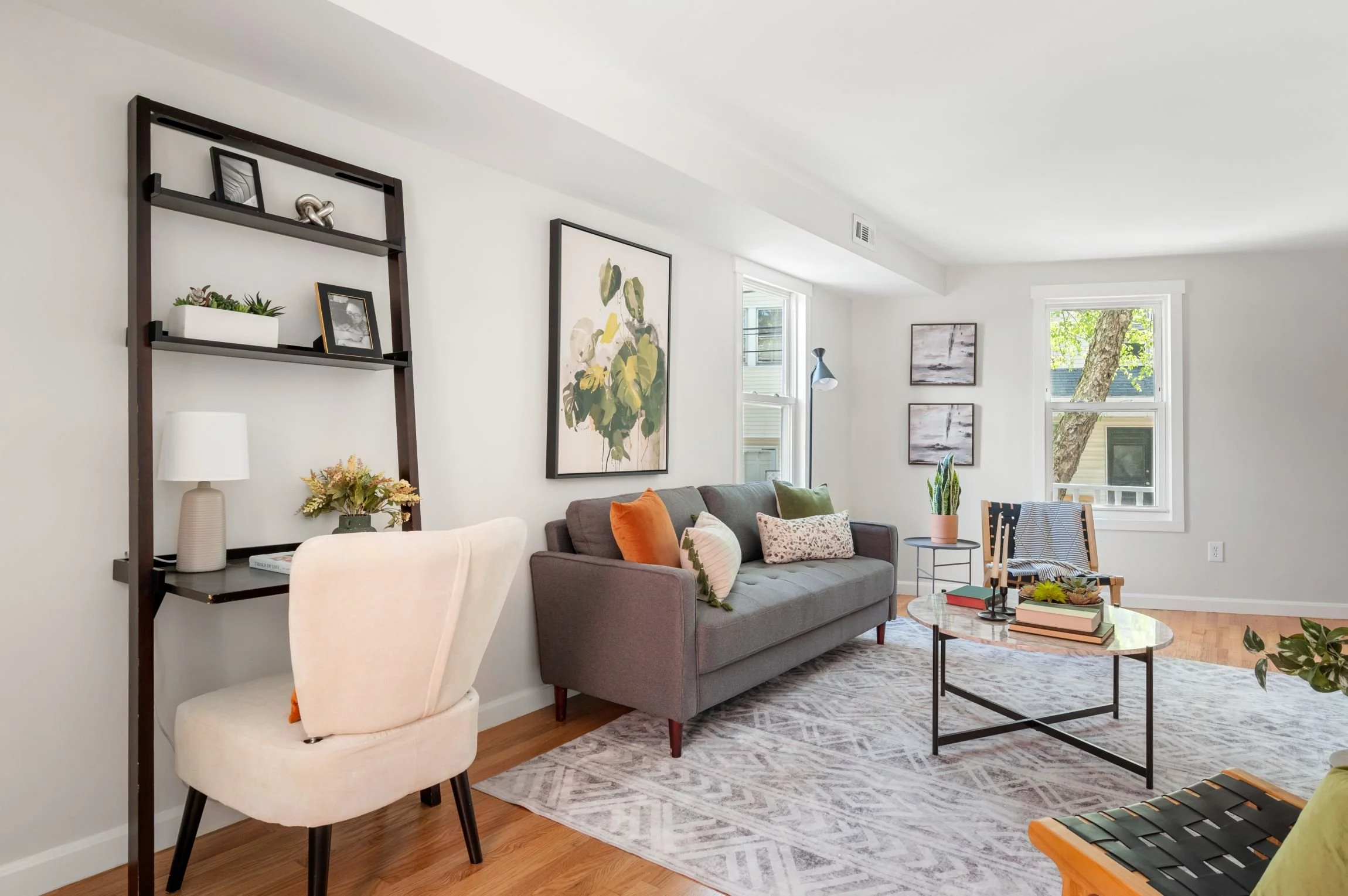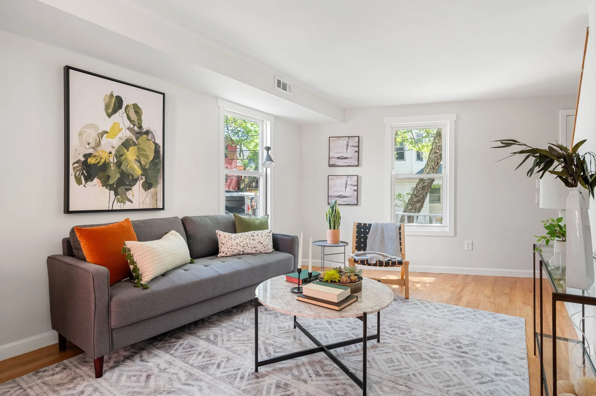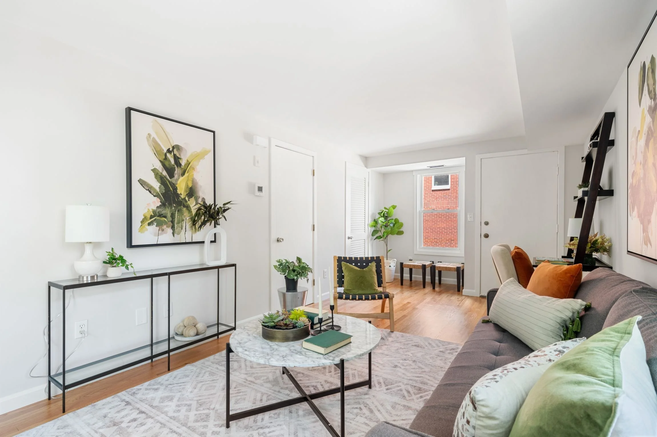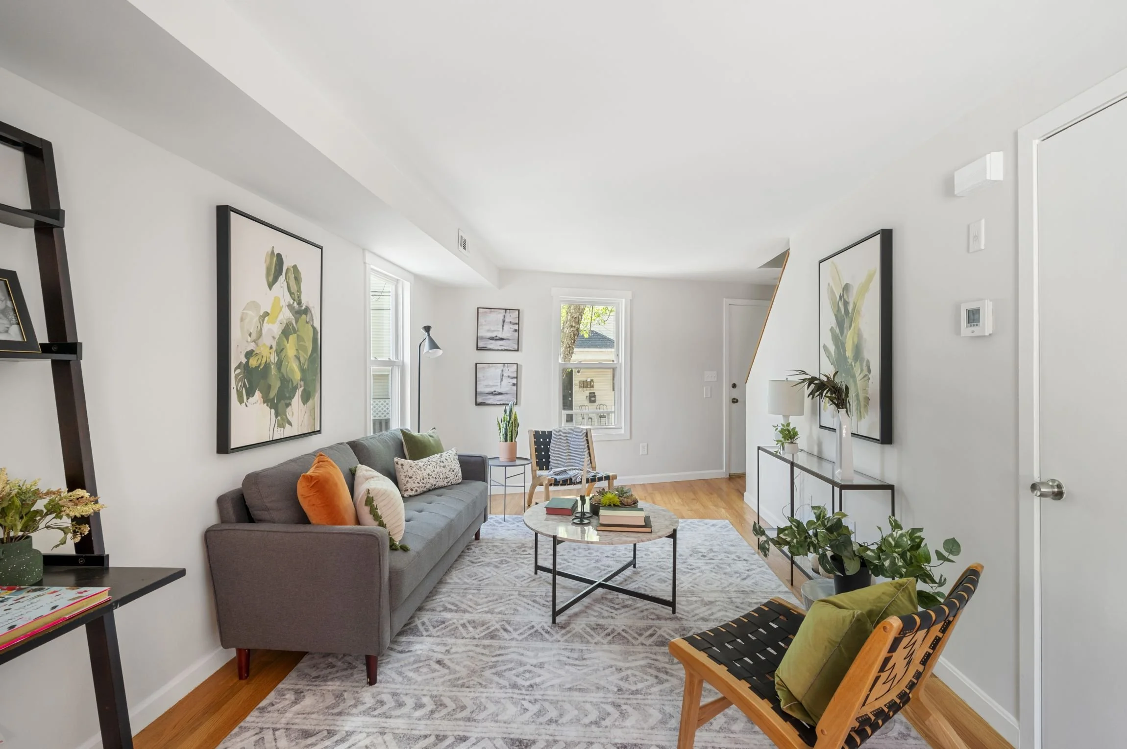 The ample-sized living room offers the perfect space for lounging and entertaining. With 3 large windows that let in plenty of natural light, and there is a back door that leads to the driveway and secret patio. This level also has a large coat closet with storage space under the stairs, and a 2nd closet for mechanicals.