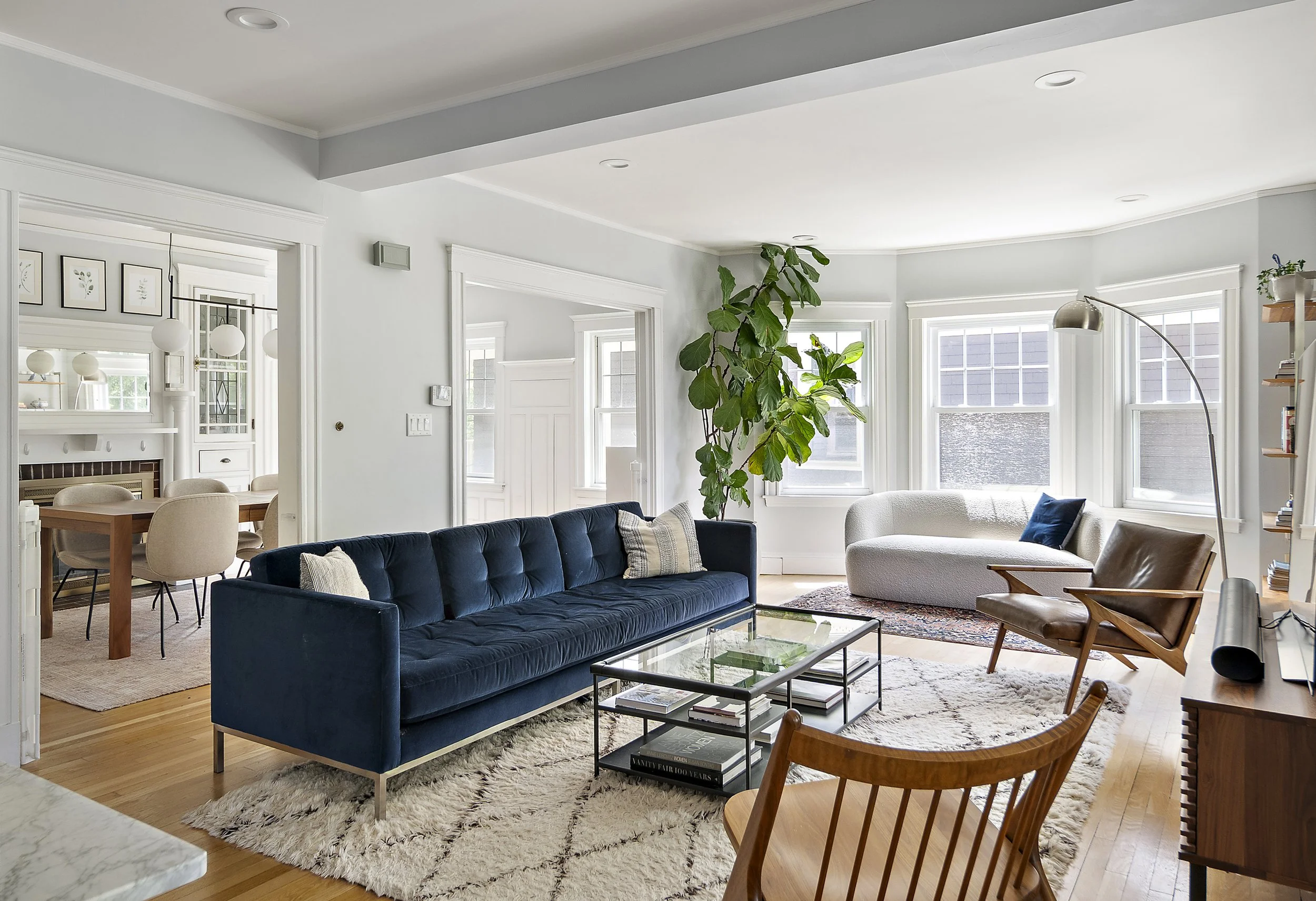 Welcome to a truly modern urban retreat at 49 Prince Street, Unit 2, nestled in the sought-after Pondside neighborhood of Jamaica Plain. This elegant home is uniquely positioned between the serene landscapes of Olmsted’s Emerald Necklace and the vibrant amenities of Centre/South Street. Spanning over 2,600 square feet, this duplex embraces modern living with a nod to its architectural heritage. A dedicated entryway invites you to the expansive second-floor living area, where original oak paneling complements a cozy gas fireplace. Direct access to your private front porch creates a seamless indoor-outdoor flow, perfect for entertaining or relaxation. The heart of this home is its beautifully renovated kitchen, outfitted with Thor professional-grade appliances and stunning quartz countertops. Adjacent is a bright dining nook bathed in natural light from overhead skylights, alongside a convenient half bath. The upper level hosts four generously proportioned bedrooms, the Primary Bedroom benefiting from natural skylights, ensuring a light-filled ambiance. The full tiled bathroom has been meticulously renovated to cater to modern tastes. A dedicated laundry room adds to the convenience of everyday living. Outdoors, you'll find exceptional features including a two-car garage, off-street parking, and fenced-in common outdoor space including a patio. The yard, adorned with mature gardens, offers a serene escape. Pet-friendly and equipped with gas heat, this home truly caters to all your needs. Don't miss the #39 bus at the end of Prince Street for effortless commuting to Longwood and downtown Boston. Experience this urban delight today!