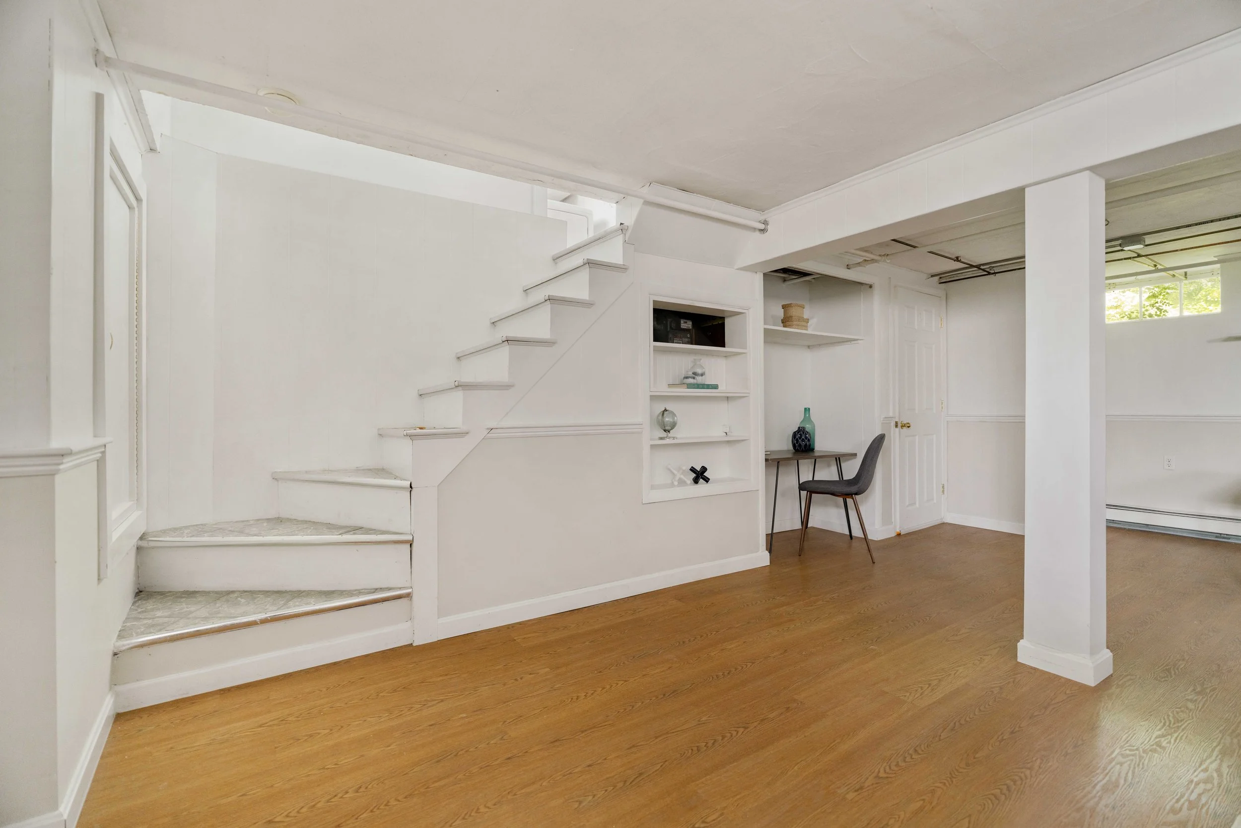 The lower level has a large finished room that can work nicely as a den or exercise room. This level has its own heat zone.