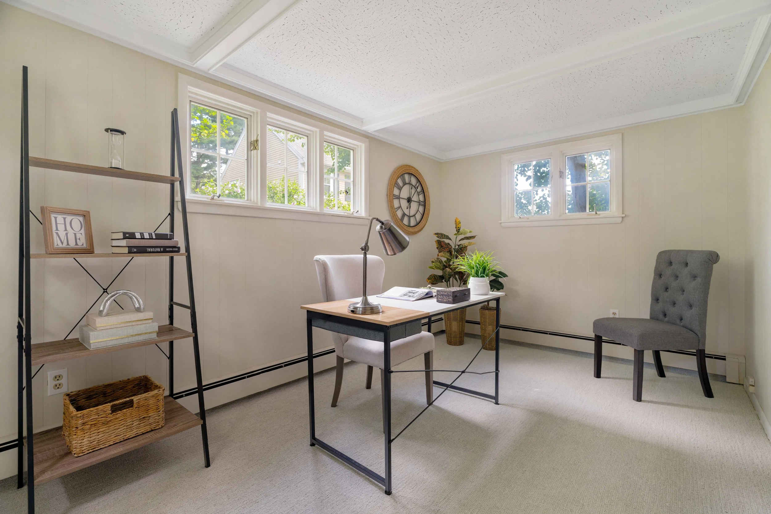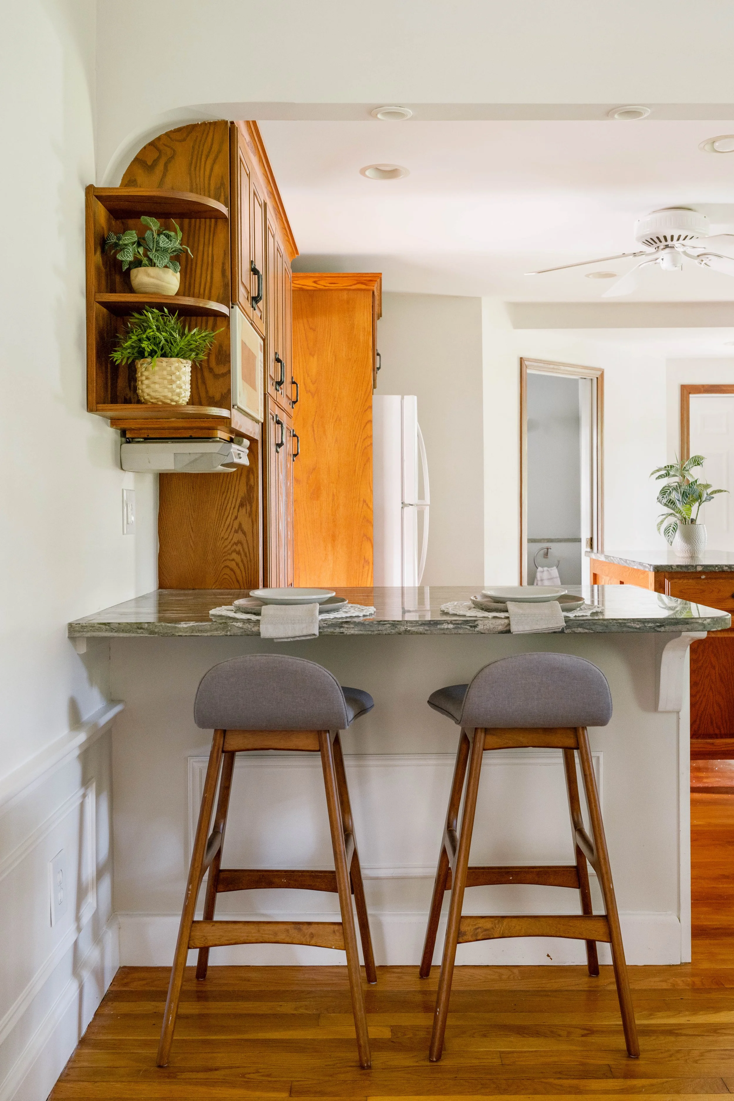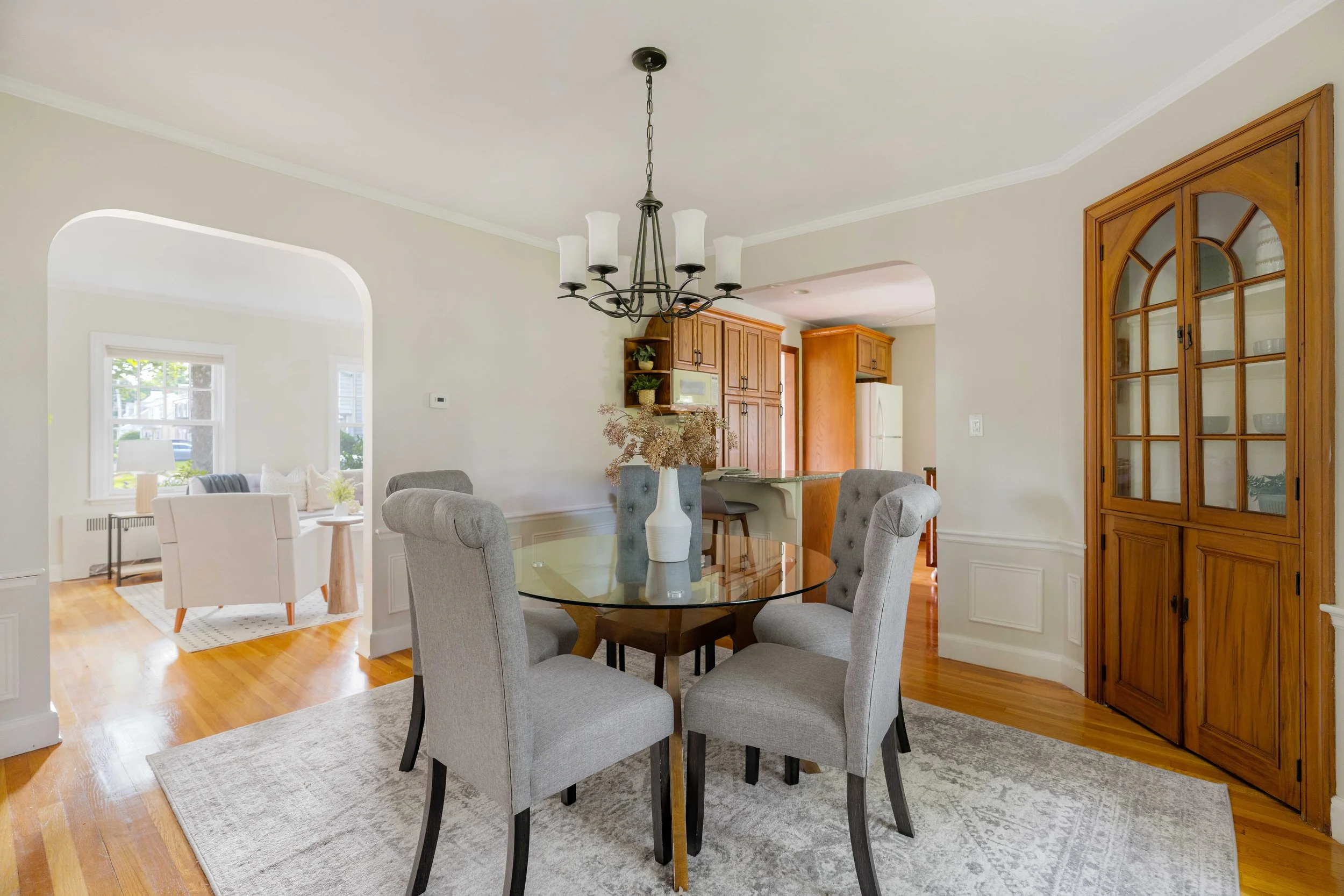 Welcome to this charming 3 bed, 1.5 bathroom home with gleaming hardwood floors throughout. You’ll be greeted by an inviting atmosphere that features a cozy living room with a wood burning fireplace. The kitchen with modern glass-tile backsplash, granite counters and an island adds a touch of elegance to the heart of the home. The spacious dining room is open to the kitchen and ideal for family meals and entertaining. A bonus room off the dining room offers possibilities of a dedicated workspace, den or guest room. Located upstairs are the 3 bedrooms. The walk-up attic provides ample storage and potential for expansion, while the finished basement offers versatility for a playroom, gym, or additional living area. The patio with easy access off the kitchen is a true oasis, boasting a lush green backyard & ornamental pond creating a tranquil ambiance overlooking Kelly Field. Ideally located within a short distance to Milton’s highly rated public schools, the T and Turner's Pond.