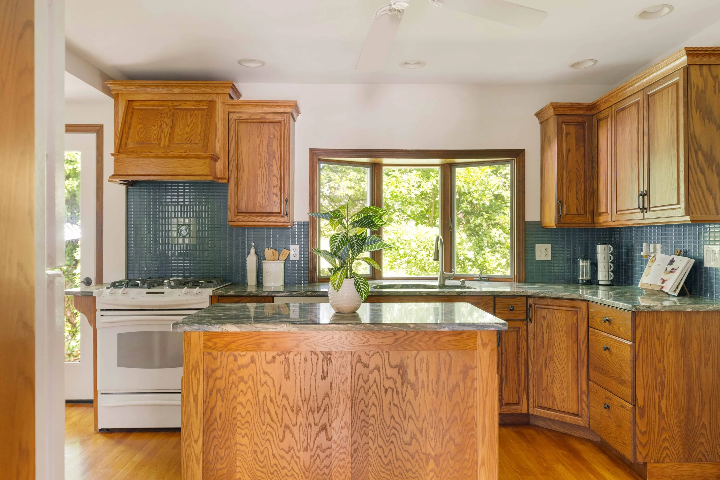 Off the kitchen is easy access to the attached garage and steps leading to the private outdoor oasis that adds to the overall appeal of the outdoor space.