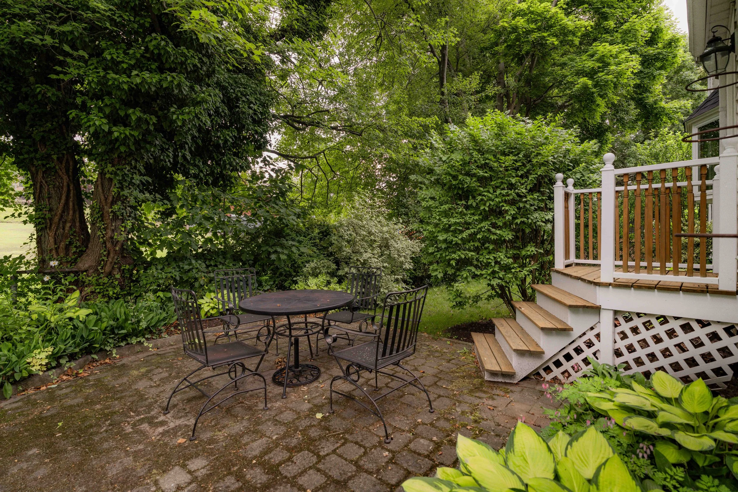 Yard: Backyard ornamental pond & patio overlooking grassy Kelly Field.