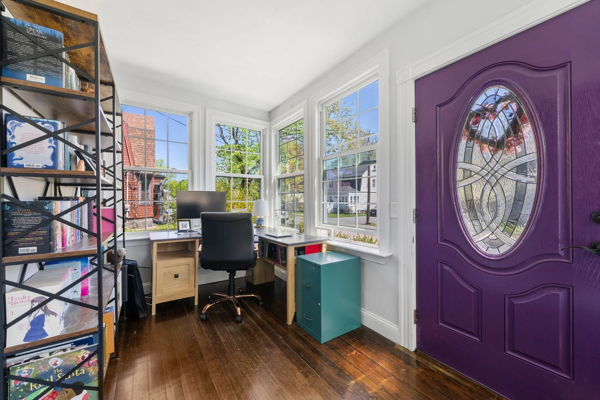 From the sunroom step into an aesthetically proportional foyer with a nicely sized closet perfect for New England living.