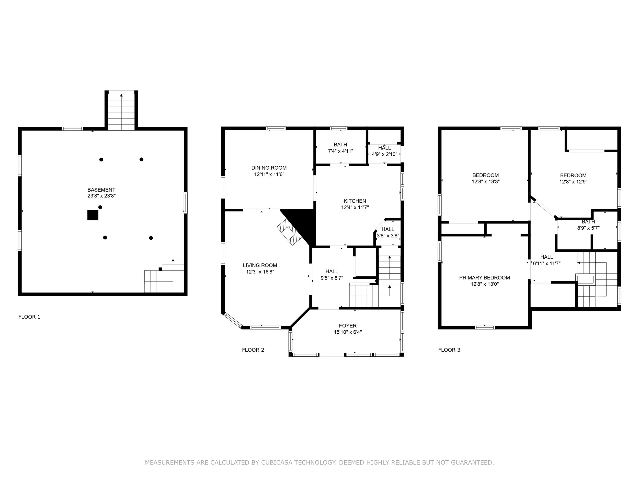 The first floor half bathroom houses a side-by-side washer/dryer and a large window overlooking the backyard allows for a sunny, utilitarian space.