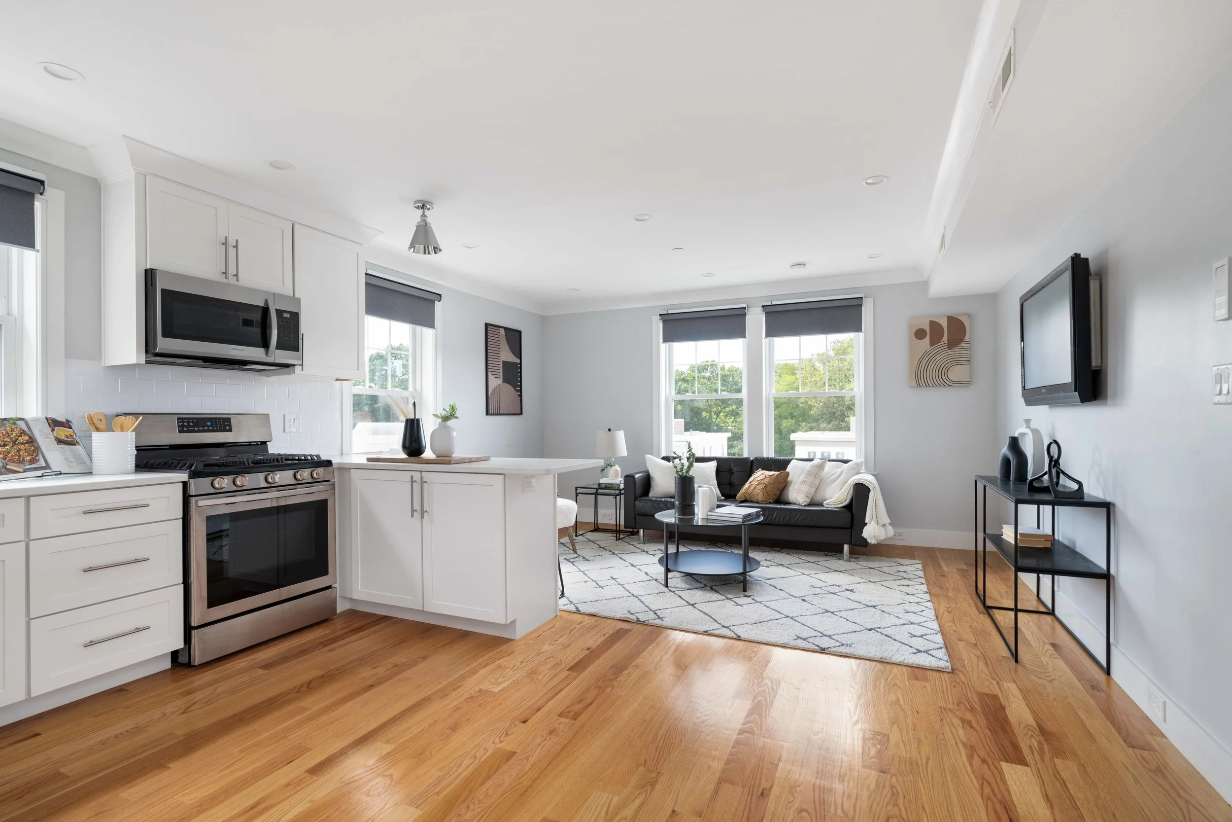 Come and experience the perfect blend of modern living and convenience in Roslindale! Gorgeous 2021 gut renovation offering a 2 bedroom penthouse level condo with a stunning array of stylish finishes. As you enter the home, you’ll be greeted by a spacious open floor plan that boasts gleaming hardwood floors, high ceilings and abundant natural light. The ample sized living area seamlessly connects to the designer kitchen, featuring white shaker cabinets, quartz countertops, stylish tiled back splash and stainless steel appliances. In-unit laundry, central air conditioning, additional lockable storage in the basement and a rear deck with an exclusive use area complete this home. Centrally located, you'll have easy access to various bus and transit options, making commuting a breeze. With Roslindale village just moments away, you can immerse yourself in the vibrant local community. Spend your weekends exploring the Farmer's Market during the day and savoring the diverse restaurant scene at night.