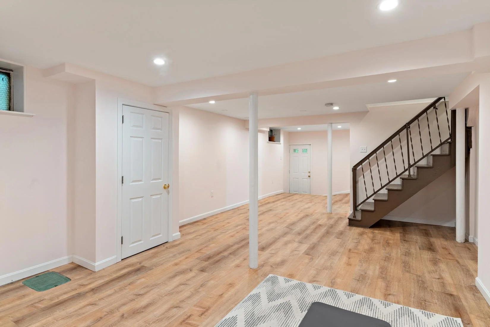 The finished lower level lends itself to a home gym or additional family space and includes plenty of storage space, laundry, a quarter bath, and utilities.