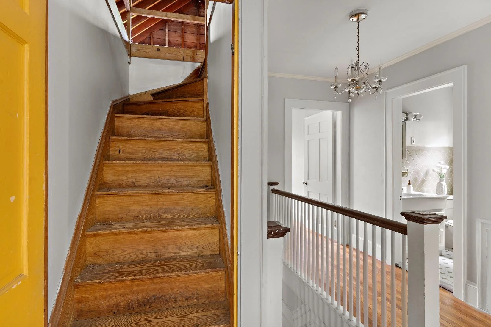 Retreating to the front entryway, ascend the stairs to the second floor to find four bedrooms and a full bathroom. Each bedroom features plenty of natural light, ample closet space, and offers versatile use.