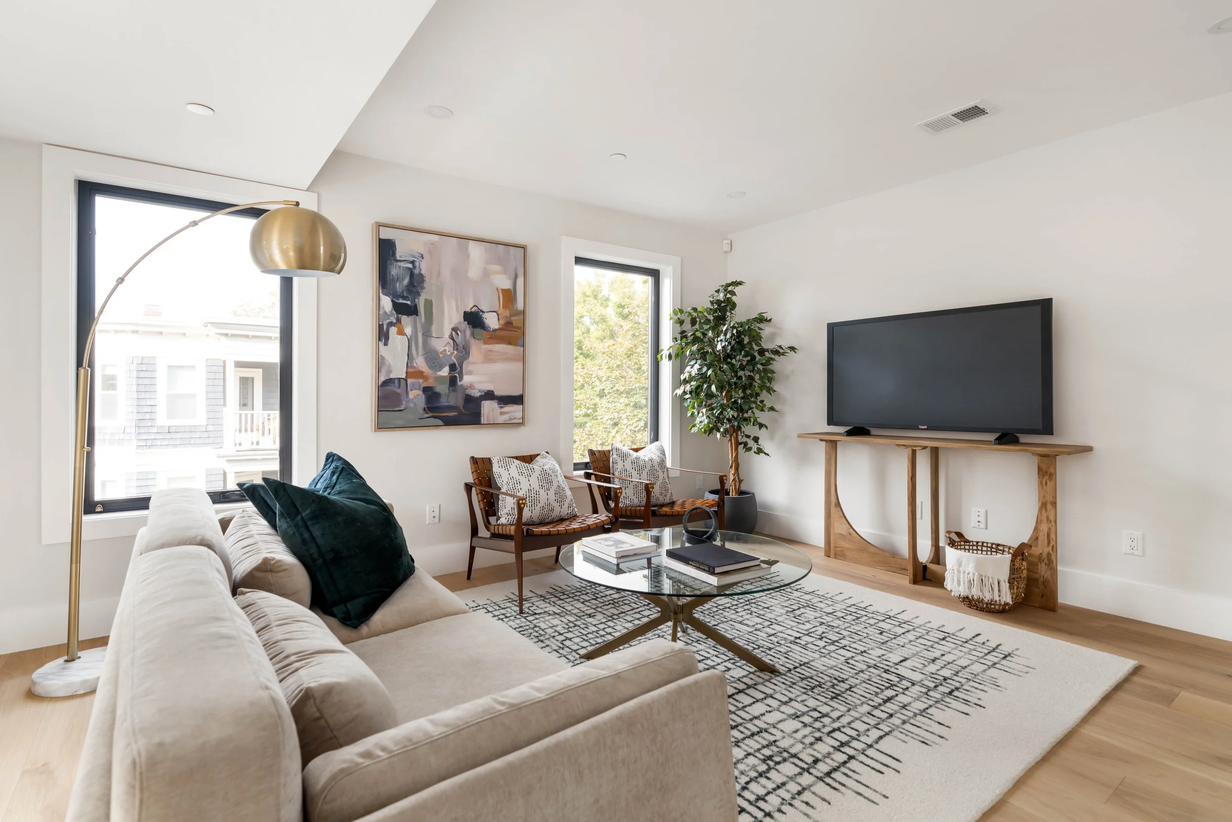 Nestled on a tree-lined street just minutes to Fresh Pond Reservation in West Cambridge lies a gorgeous newly-renovated 3-bed 2-bath penthouse condo. Enter this stunning contemporary home through a private entrance, and up a set of stairs, and you will be greeted with a sun-filled open-concept kitchen, dining, and living space featuring high ceilings, engineered white oak hardwoods, large black Andersen windows, and contemporary lighting throughout. The ultra-modern wrap-around kitchen boasts dual-toned custom cabinetry, quartz countertops, Bosch appliances, a large center island, and plenty of pantry storage. The luxurious principal suite boasts two custom closets and an impeccable ensuite featuring a tile-surround shower. 2 additional bedrooms, a stylish full bath, in-unit laundry, central air, and Nest smart home products make this home a must-have. Minutes to Whole Foods, Formaggio Kitchen, Huron Village, Harvard Sq, Downtown Boston, and Rt. 2.