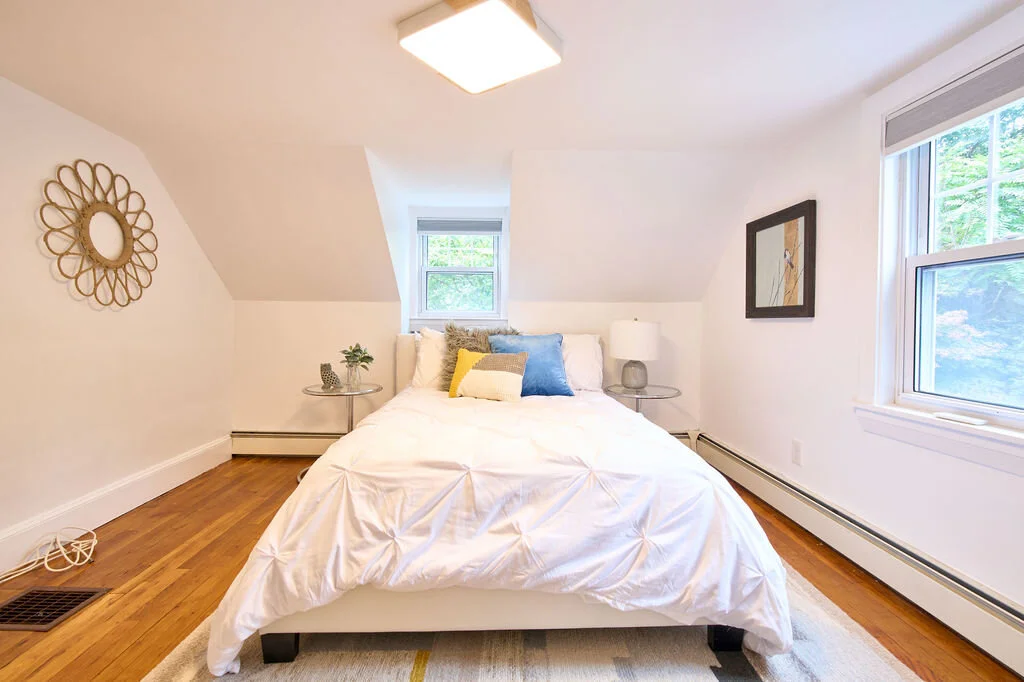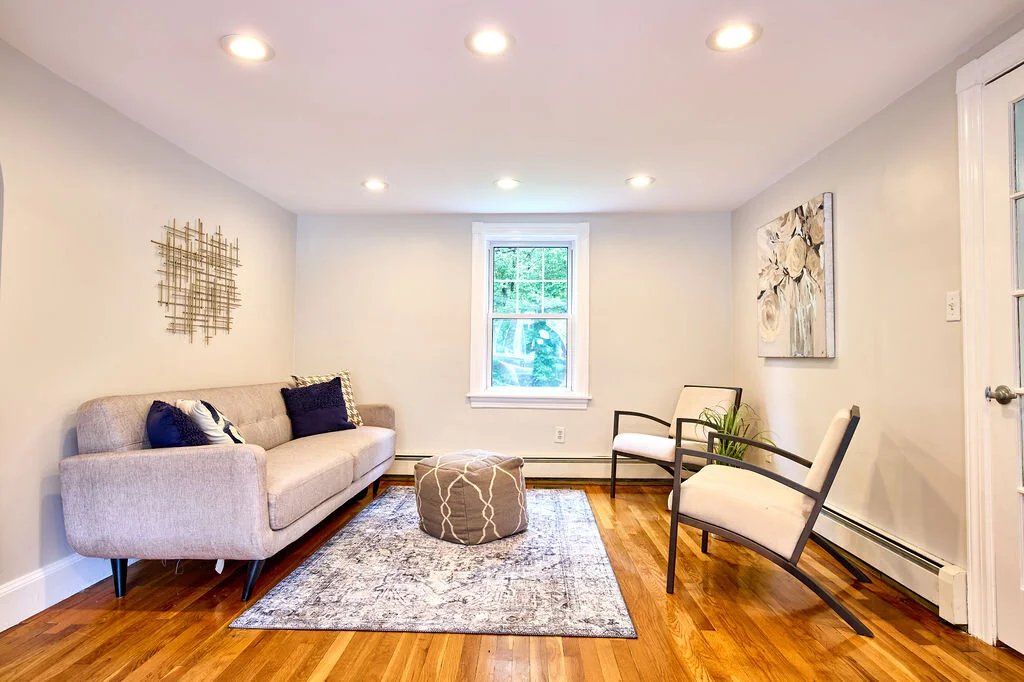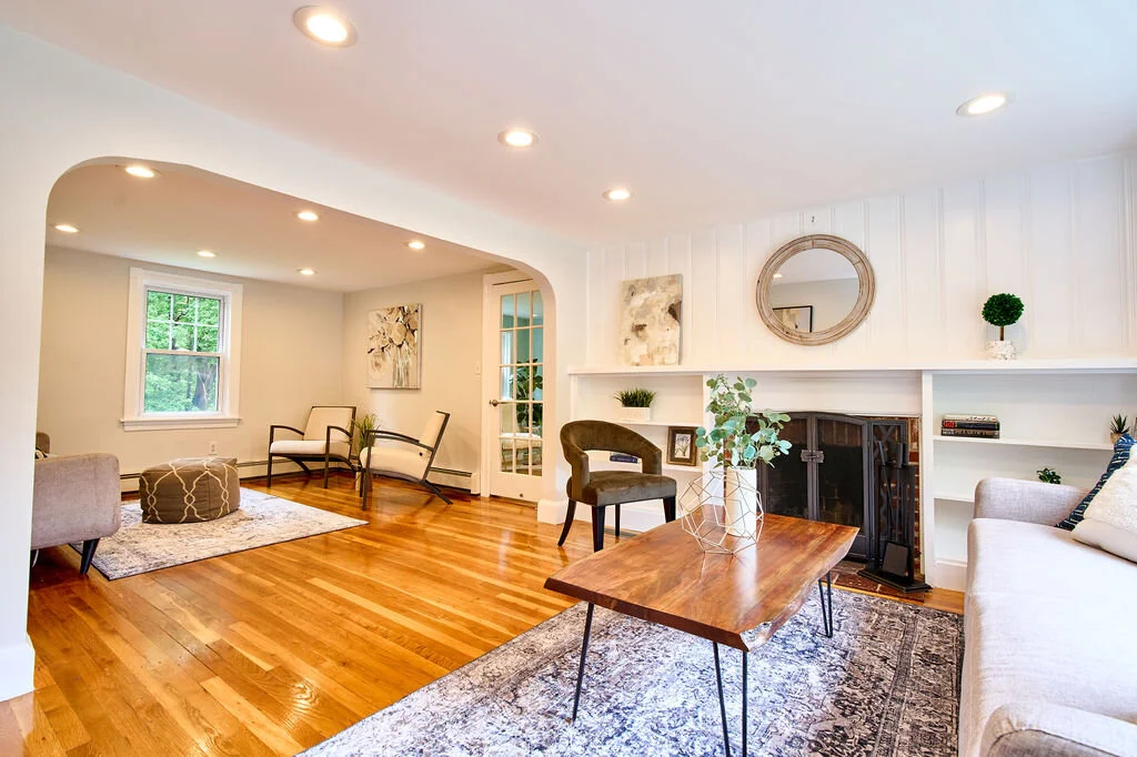 Tucked away in the Birch Meadow Park neighborhood of Reading, lies a beautiful Cape-style home with an updated kitchen and an expansive backyard perfect for entertaining. This quaint home balances charming period detailing like arched doorways and pristine hardwood flooring with modern updates like contemporary lighting and central air. The front-to-back living room which features a wood-burning fireplace is anchored by gorgeous custom built-ins and overlooks the beautiful backyard. French doors lead into a newly updated sunroom with exposed brick and plenty of windows. A bright and modern chef’s kitchen boasts new quartz countertops, stainless steel appliances, white cabinets, and tile backsplash. The kitchen leads to the formal dining room and opens directly to the back deck. Two spacious bedrooms and two full baths complete this lovely home. Laundry and plenty of storage in the basement. Ideally located just minutes from major highways, shopping and restaurants.