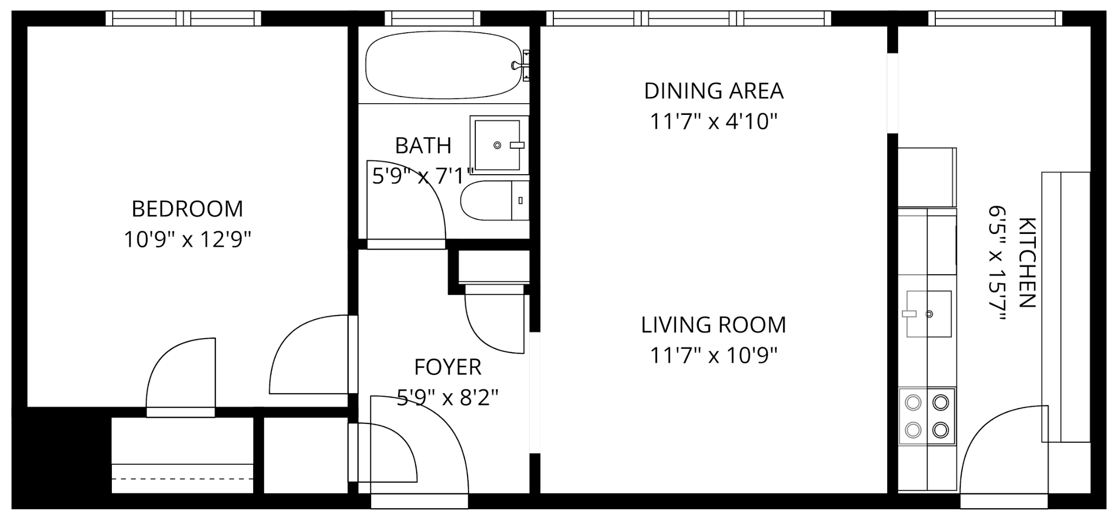 Living Area: 580 Interior Square Feet