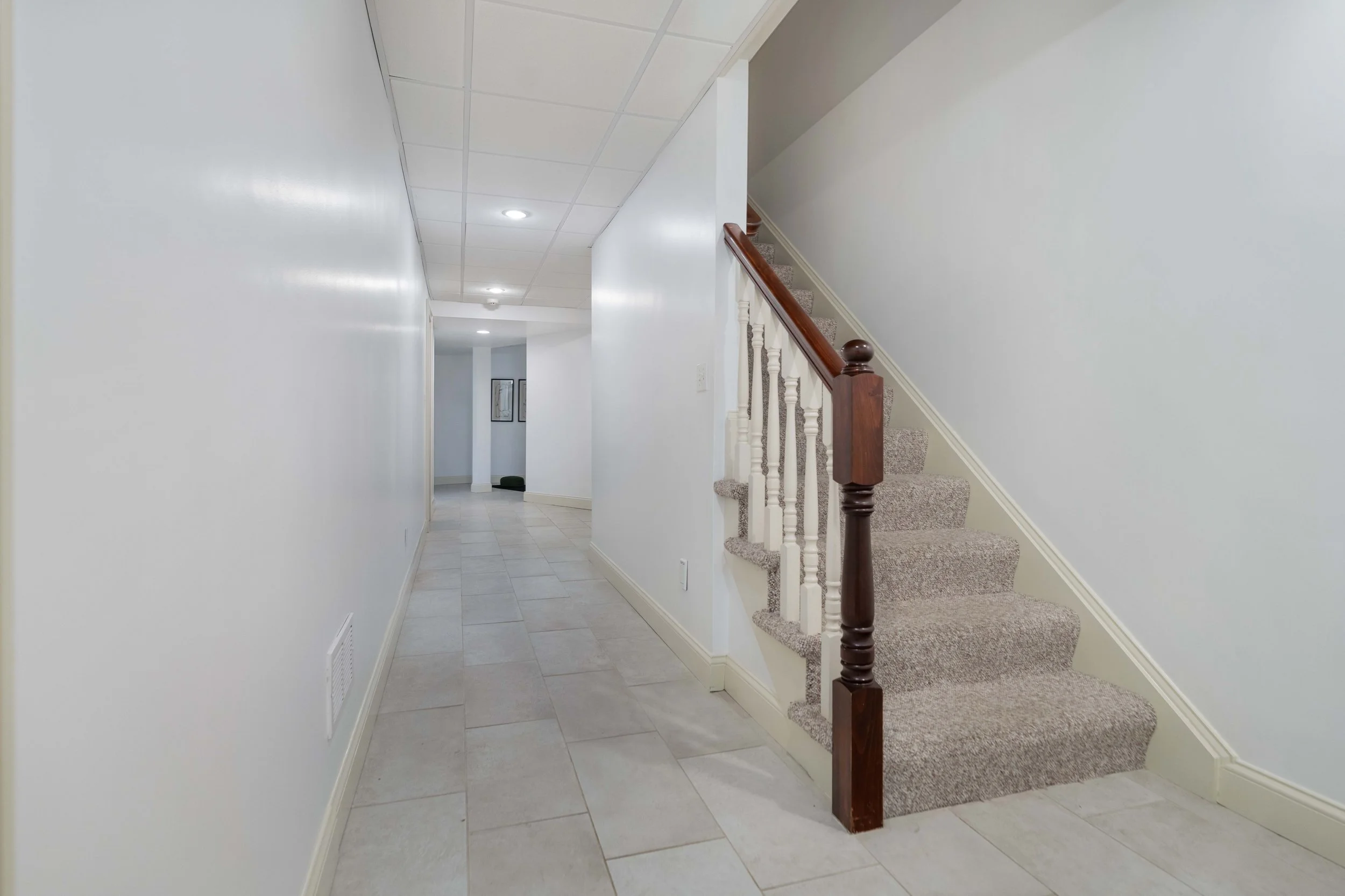 A stairwell off the mudroom leads to the expansive finished lower level.