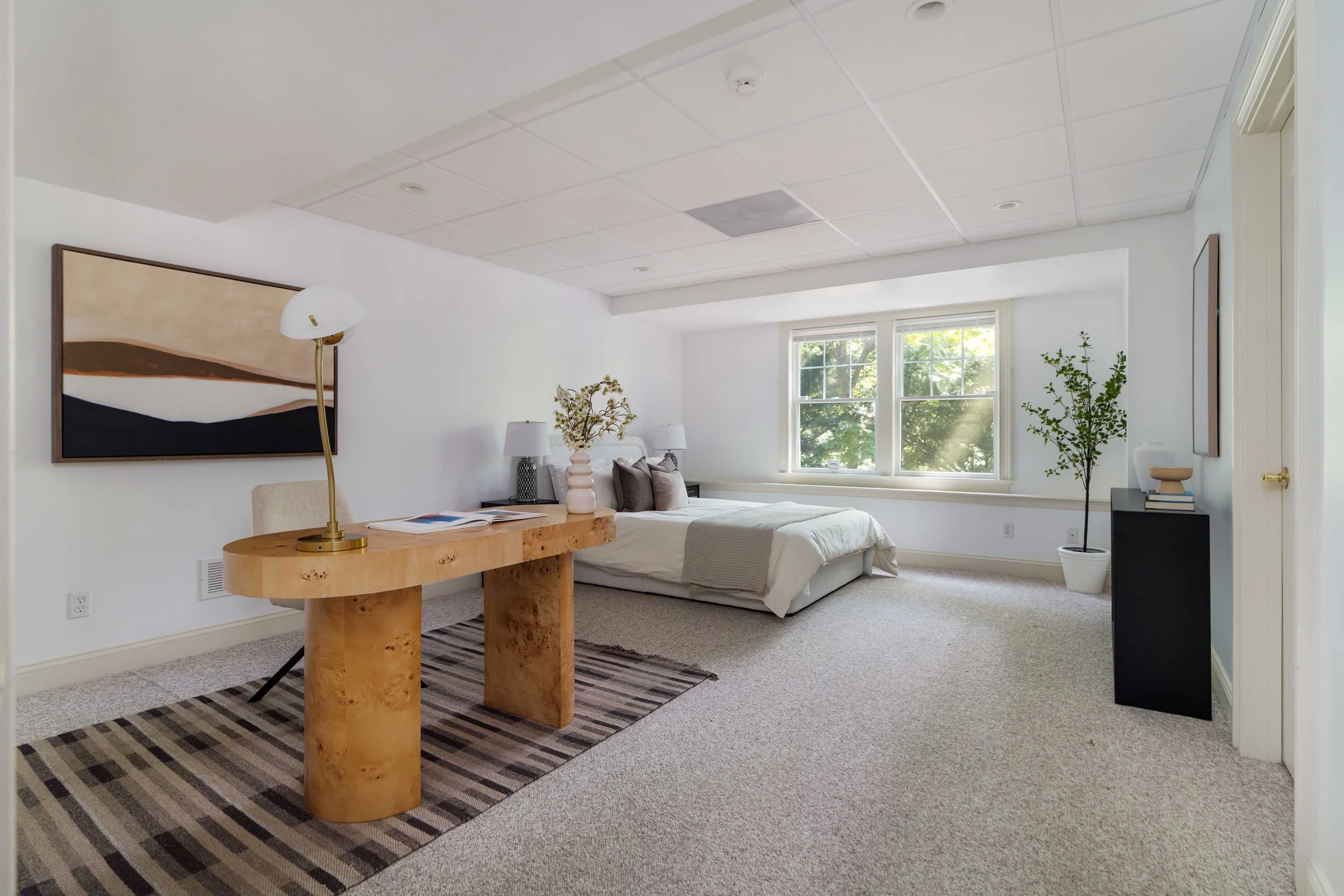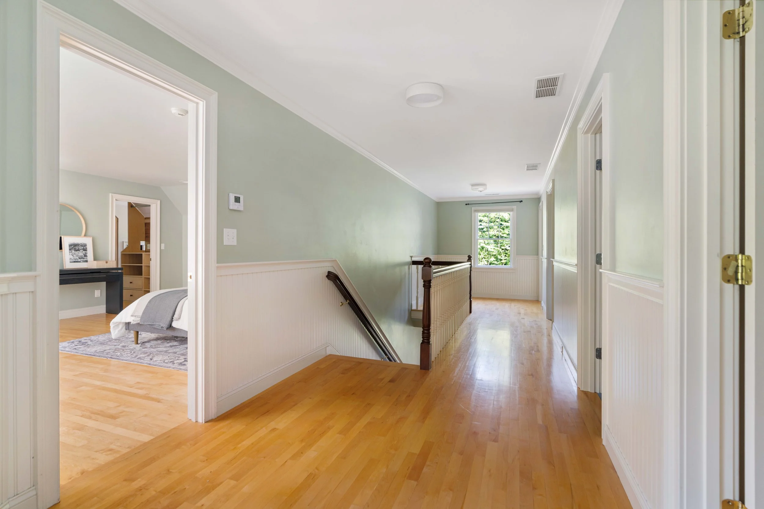 At the top of the stairs is a landing leading into the gracious and private primary suite.