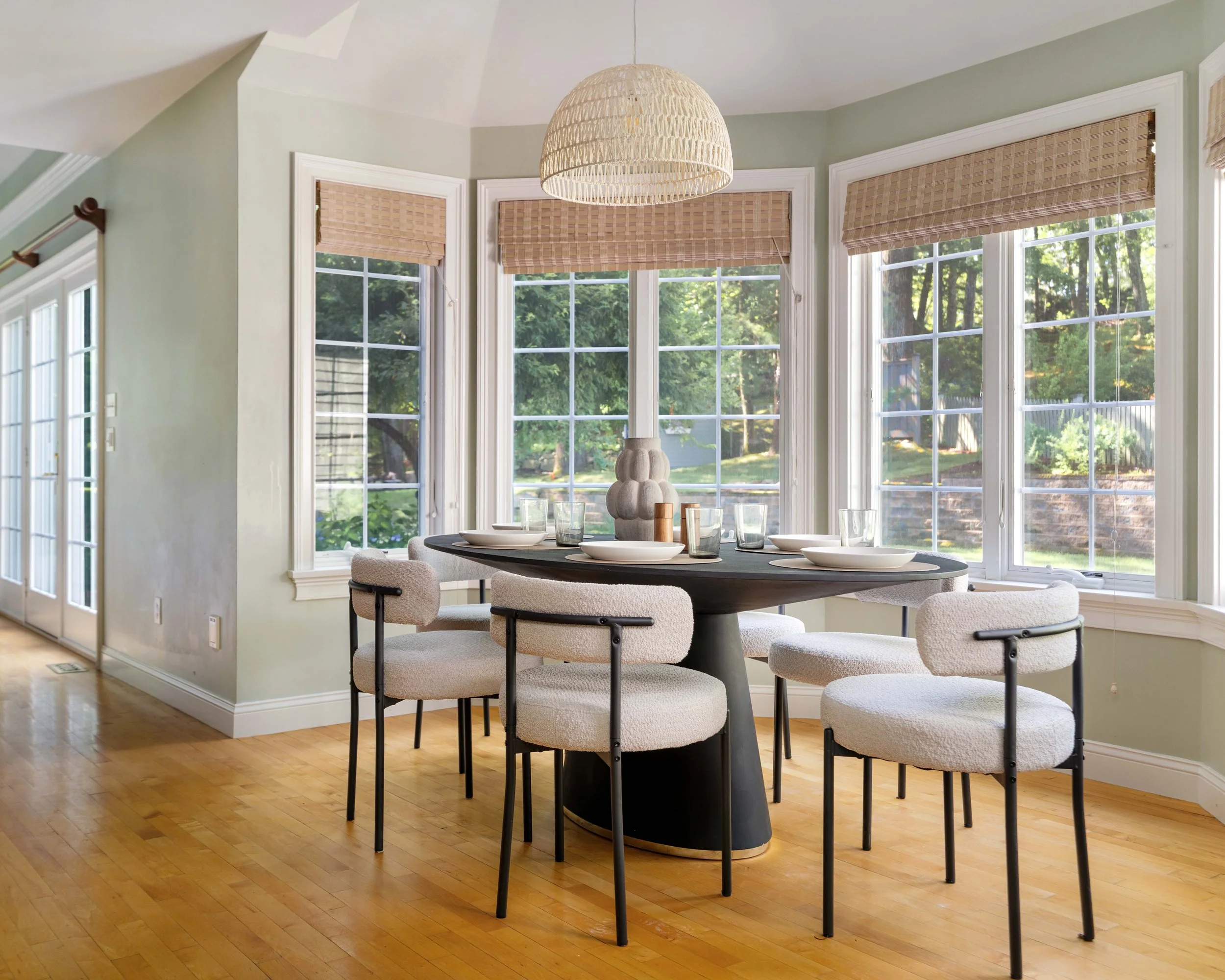 A breakfast nook is located adjacent to the kitchen, surrounded by 8 bay windows overlooking the back yard, and allowing plentiful natural light to flood the space.