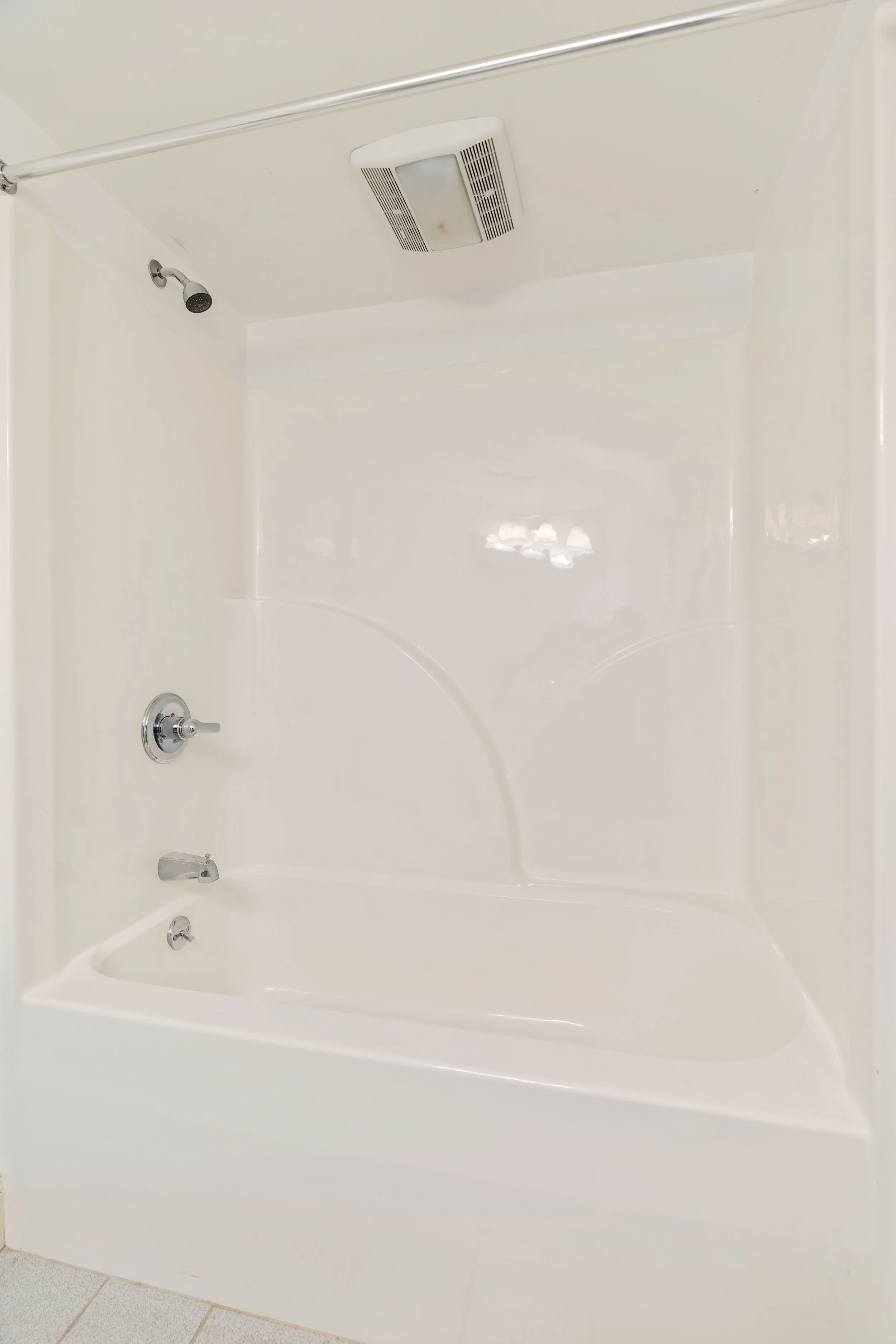 There is a full bathroom that services the three bedrooms with a double vanity, a combination tub/shower tub, and built in storage.