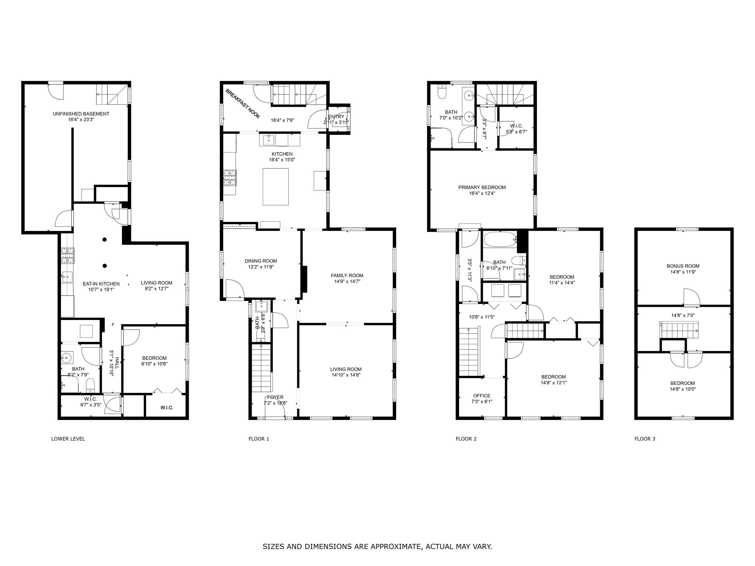 Heat & AC: Three gas-fired American Standard forced hot air systems with central air. One in the attic for the 2nd and 3rd floors, one in the unfinished basement area for the 1st floor (both new in 2016), and one in the bathroom of the apartment which heats and cools the lower level (2020). There are 5 zones of heat and AC, all controlled by programmable thermostats.