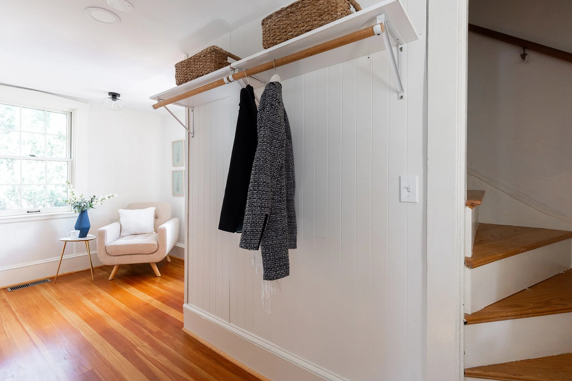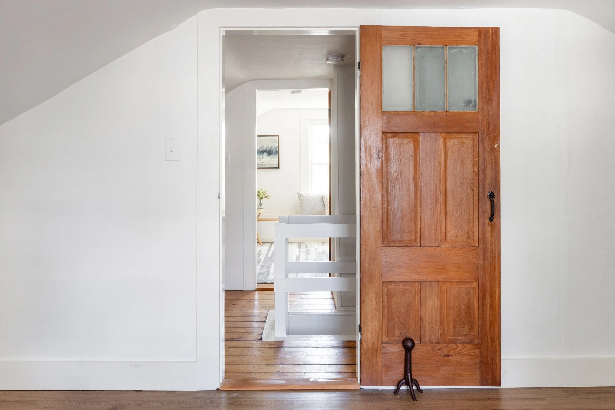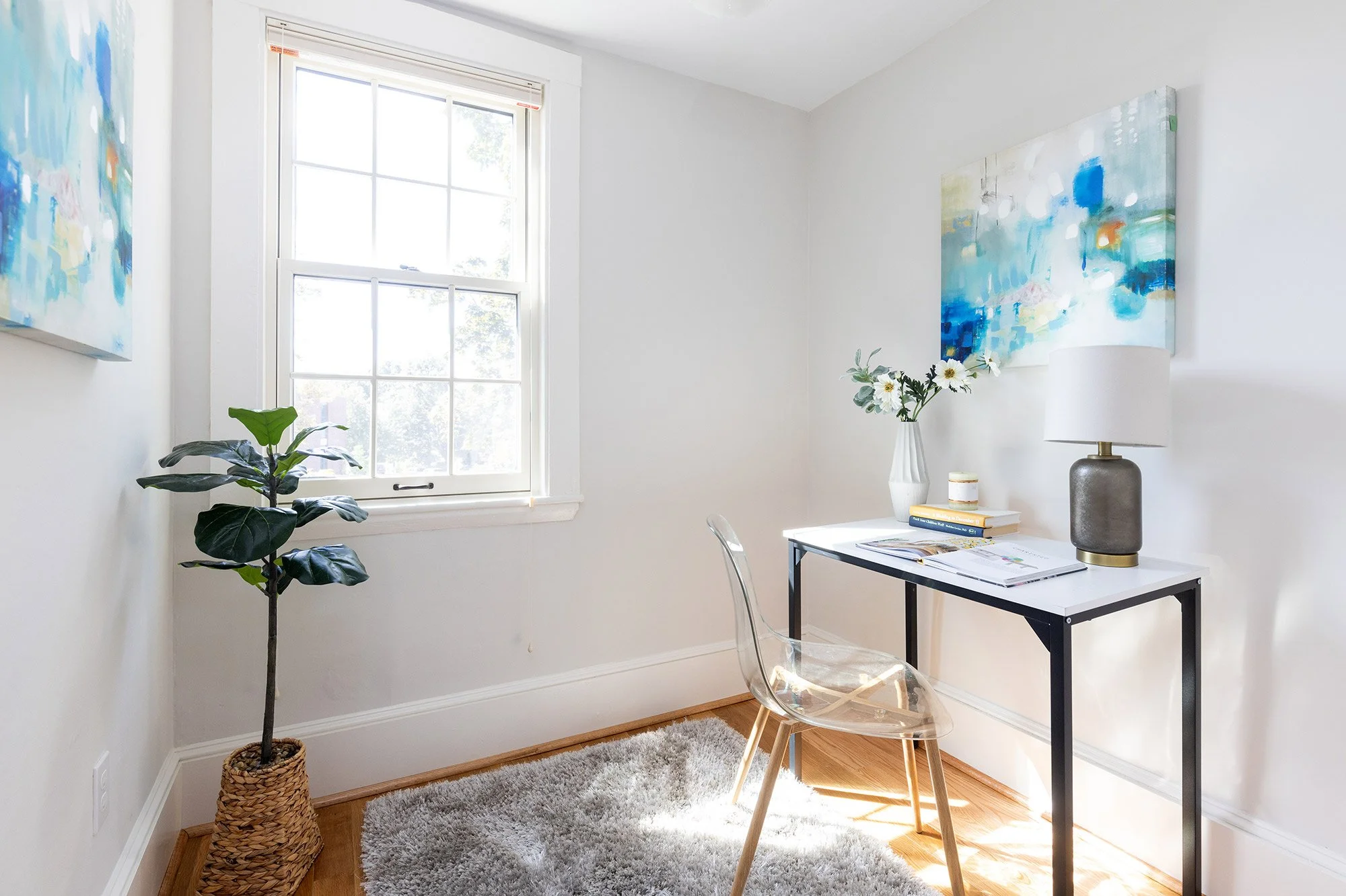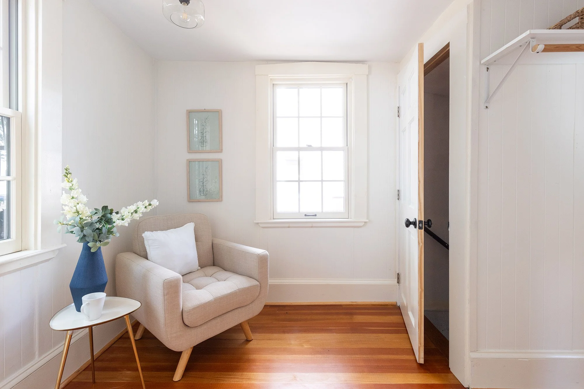 At the front of the house, there is a perfect study, which could easily be converted to a walk-in closet or used as a nursery. It has a window and a period light fixture.