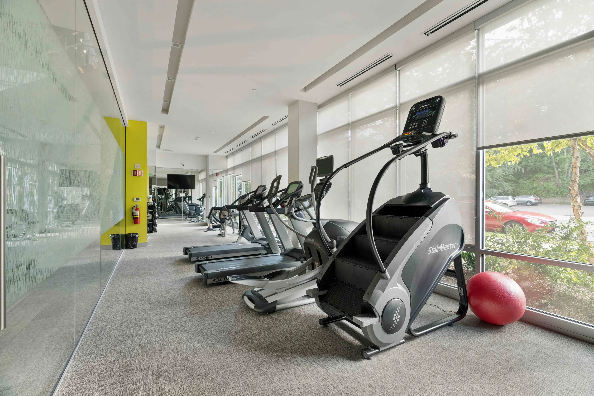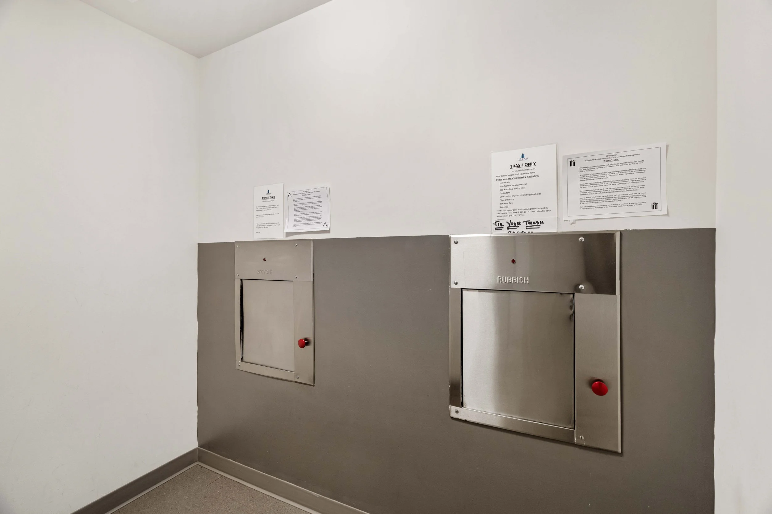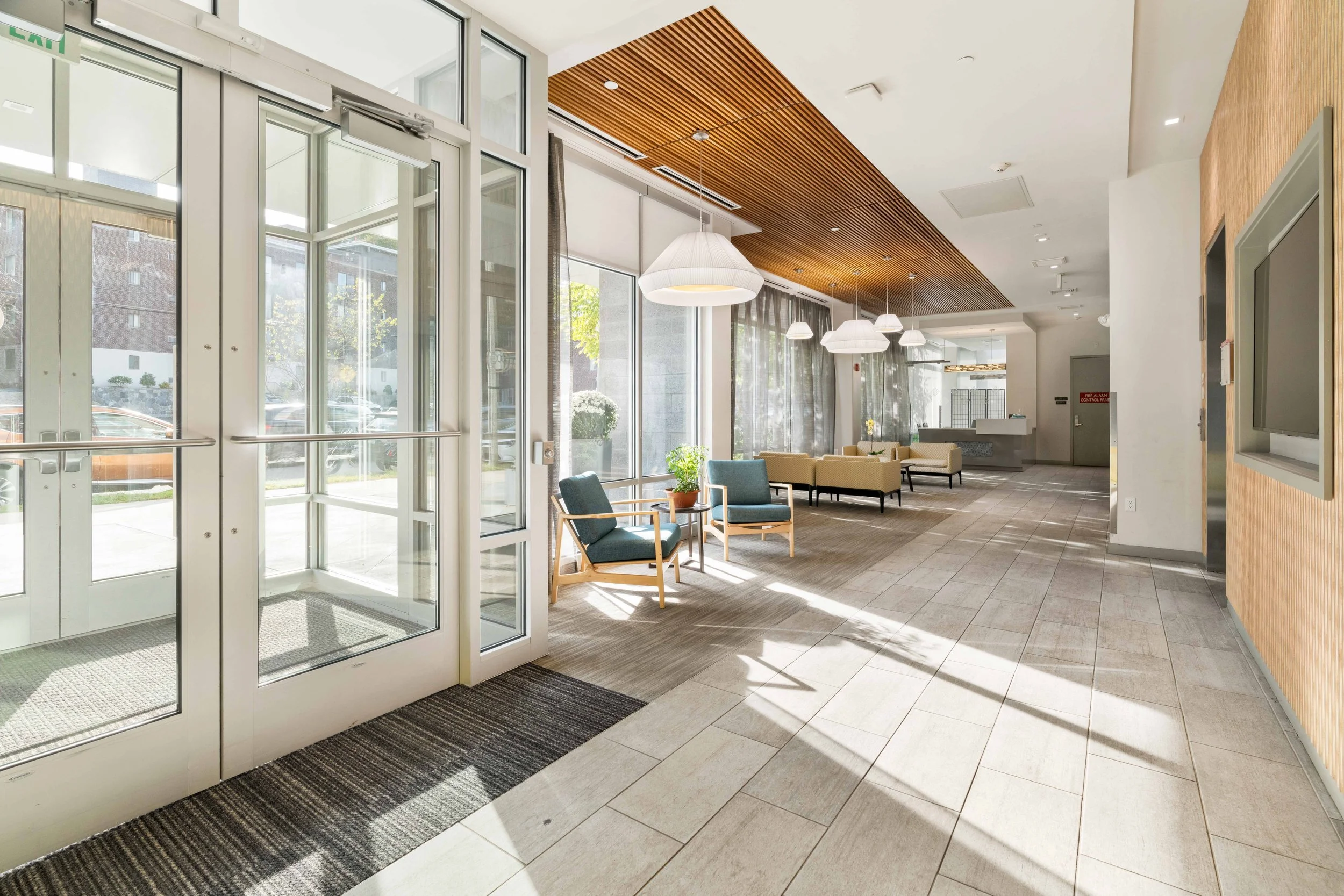 Upon entering the ground level main entrance you will find the concierge desk, mail center, fitness area, bicycle storage and access to the parking garage.