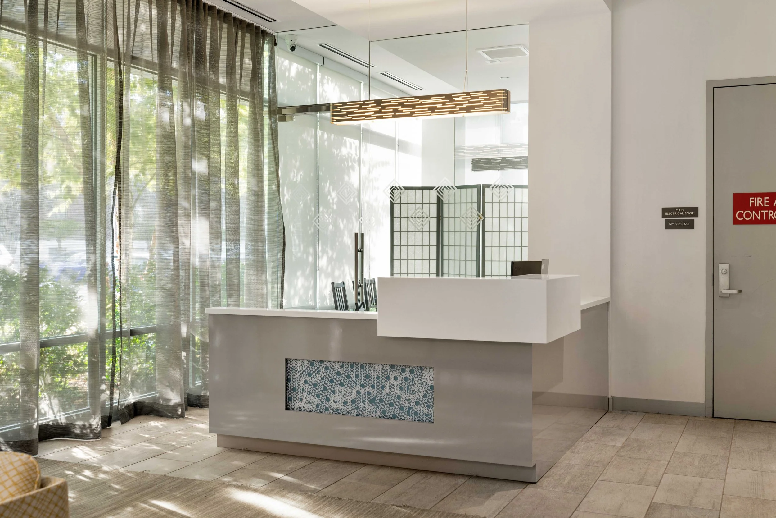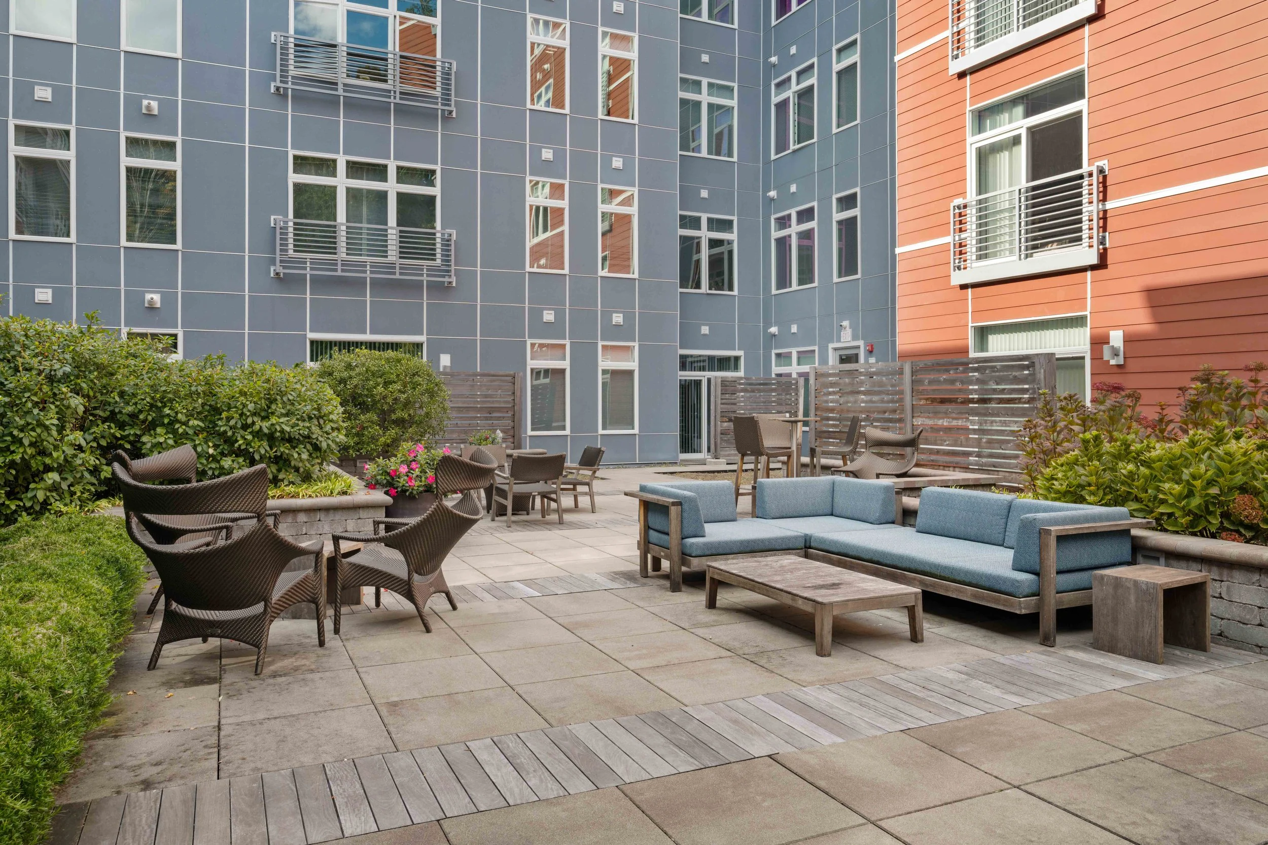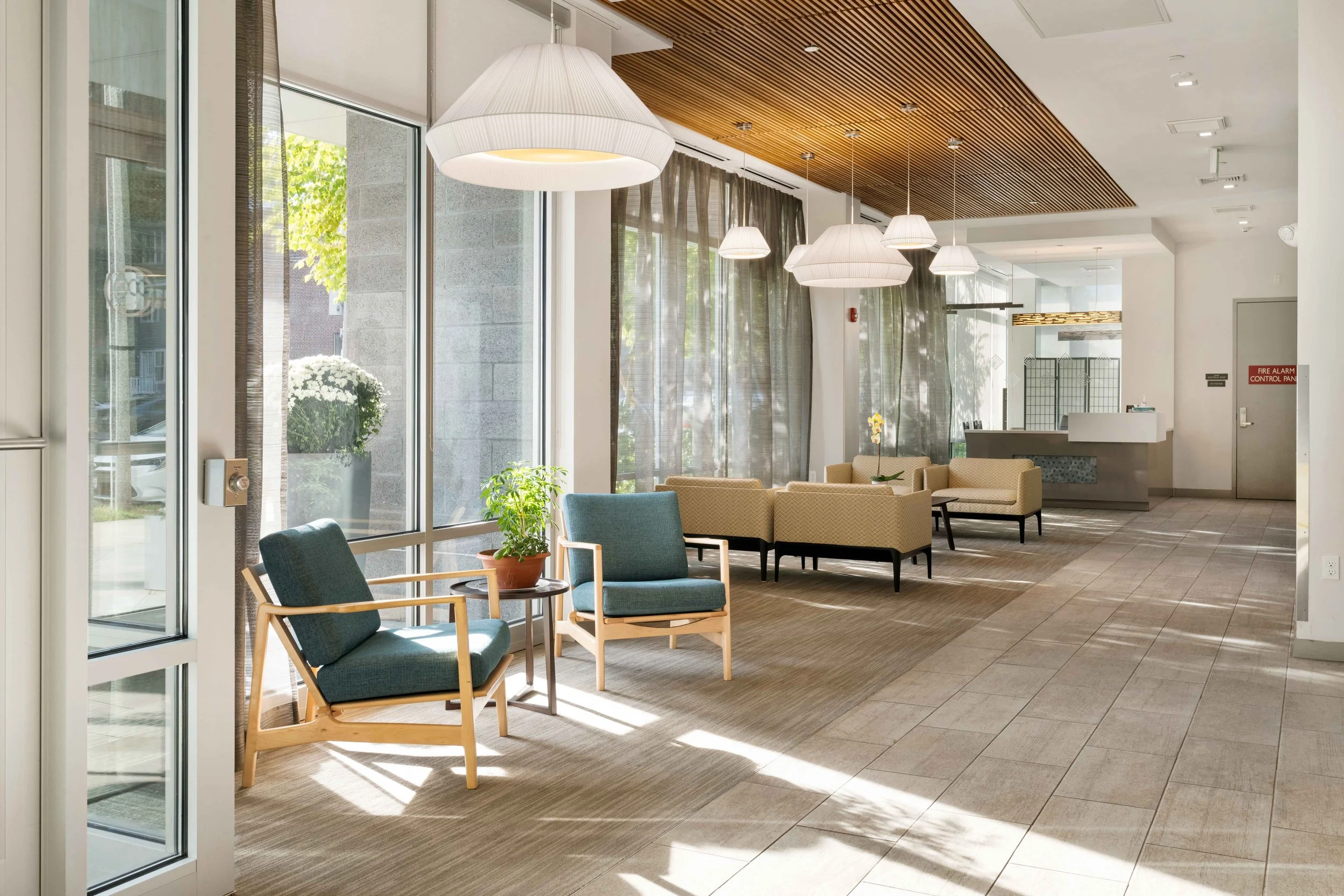 Upon entering the ground level main entrance you will find the concierge desk, mail center, fitness area, bicycle storage and access to the parking garage.