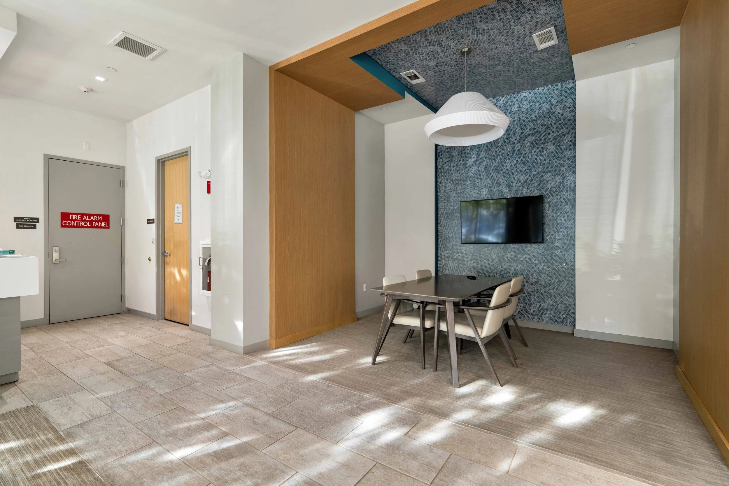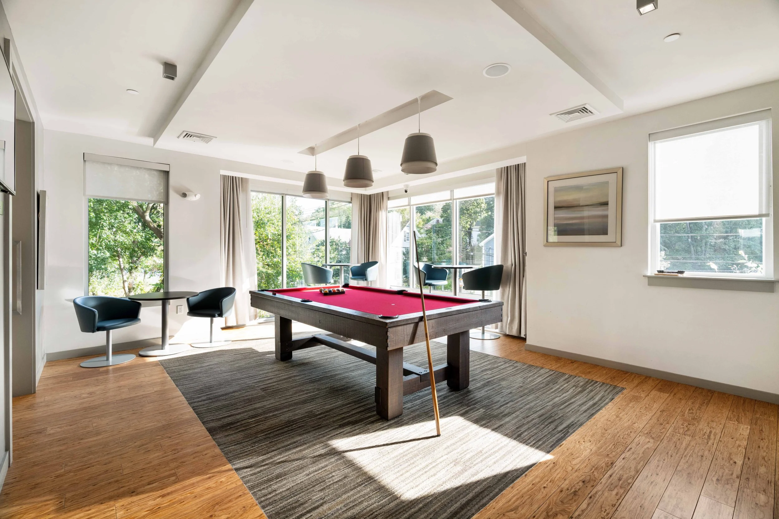 Enjoy the many amenities on the first floor of the building, including the lounge, billiards table, media center, and catering kitchen.