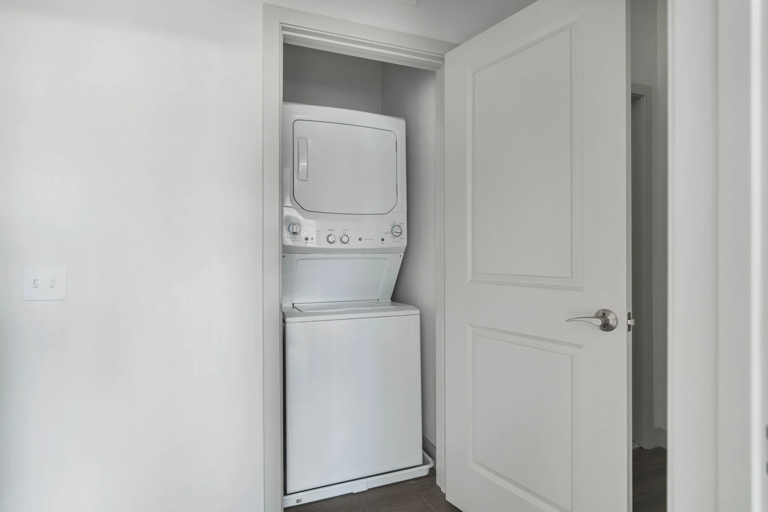 Laundry: GE stacked washer and electric dryer are located in the hallway closet and will be included in the sale.